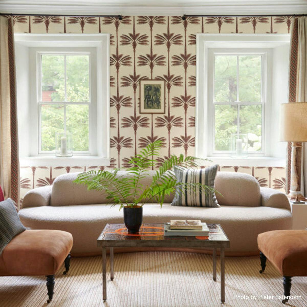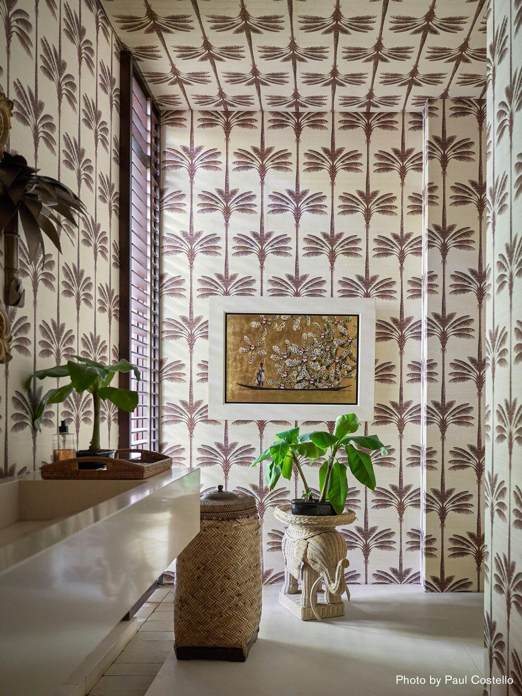 Fashion designer Johanna Ortiz was inspired by Gertrude Stein’s famous line “Rose is a rose is a rose” when she imagined this simple stylized palm wallpaper. Based on hand-drawn artwork and printed on Haruki Sisal, this graphic medium-scale design captures the essential beauty of palm trees and reflects Ortiz’s fascination with this majestic plant. It transforms any space into a serene tropical escape.