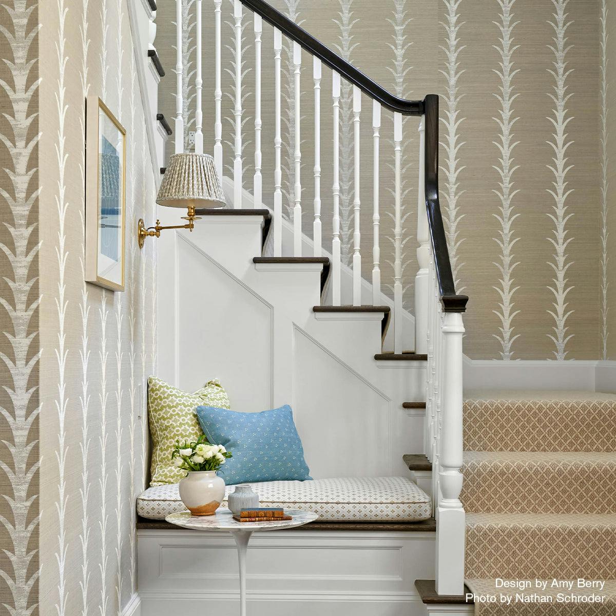 The Acanthus Stripe Sisal wallpaper blends timeless elegance with a modern twist. Featuring a stylized stripe inspired by the classic acanthus motif, this design brings sophistication and airiness to any room. Printed on a natural sisal ground, it adds subtle texture and dimension, making it a perfect choice for creating a refined, welcoming atmosphere in your home. Ideal for living rooms, dining areas, and bedrooms, this wallpaper combines traditional charm with a contemporary feel, elevating your interior decor effortlessly.