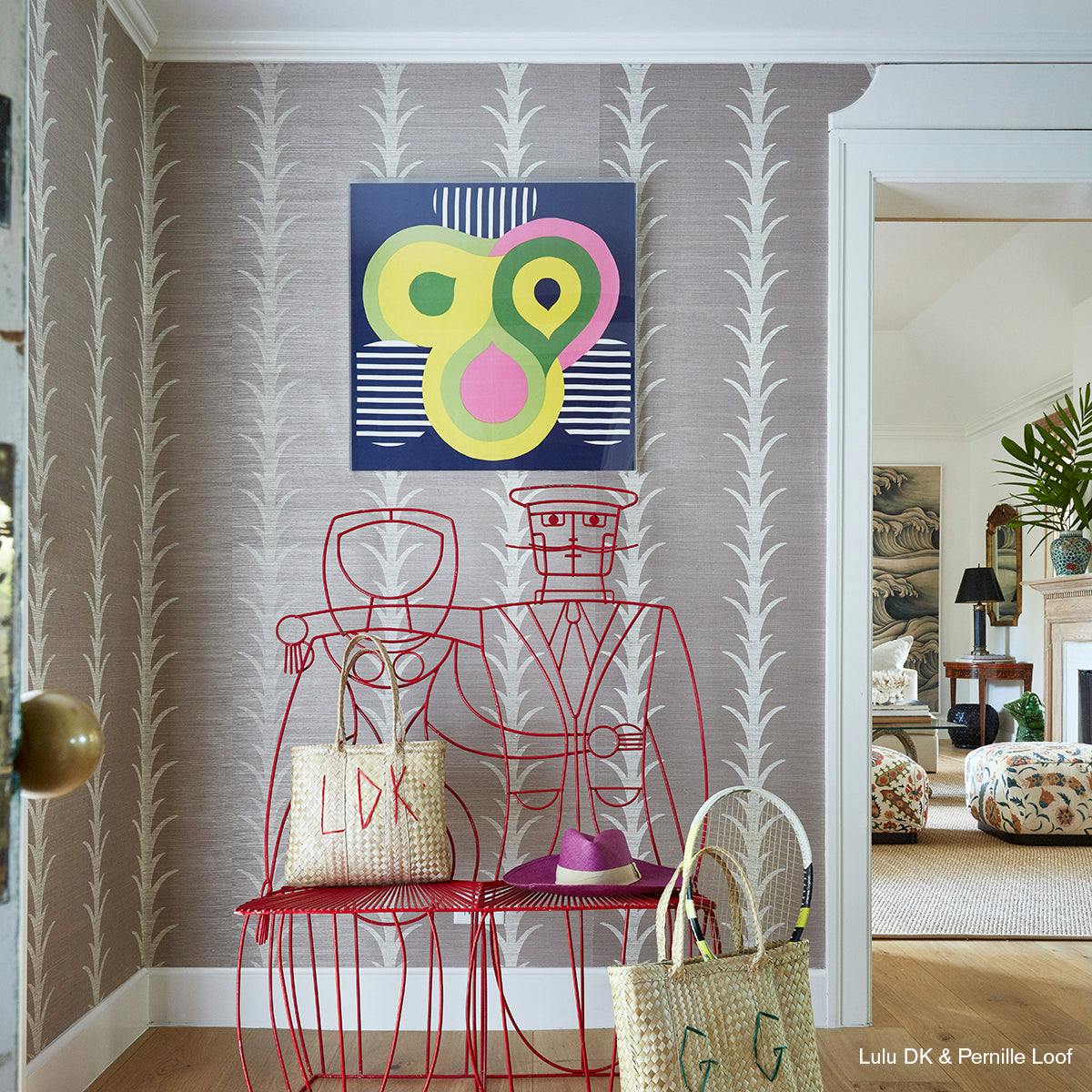 The Acanthus Stripe Sisal wallpaper blends timeless elegance with a modern twist. Featuring a stylized stripe inspired by the classic acanthus motif, this design brings sophistication and airiness to any room. Printed on a natural sisal ground, it adds subtle texture and dimension, making it a perfect choice for creating a refined, welcoming atmosphere in your home. Ideal for living rooms, dining areas, and bedrooms, this wallpaper combines traditional charm with a contemporary feel, elevating your interior decor effortlessly.