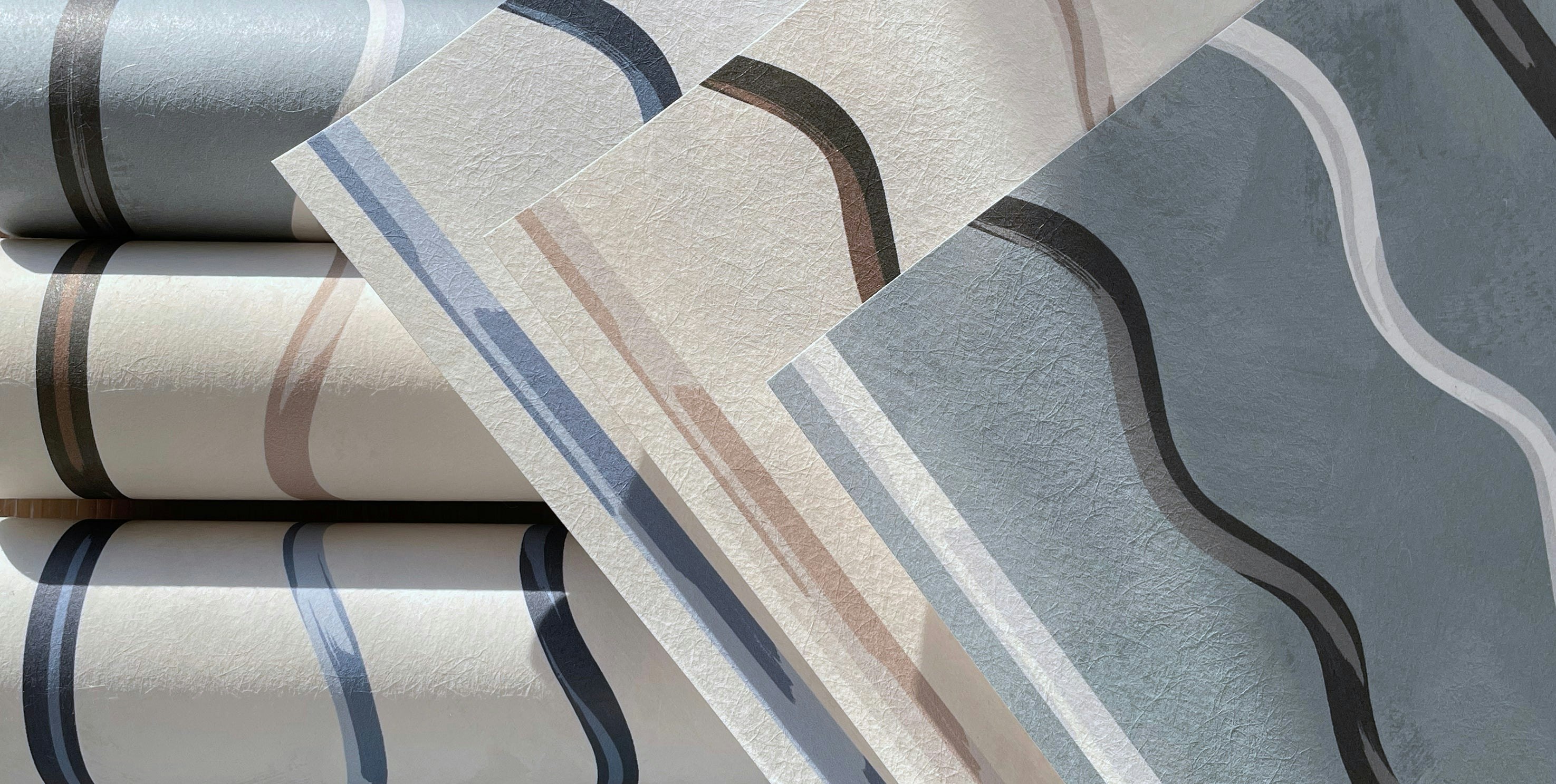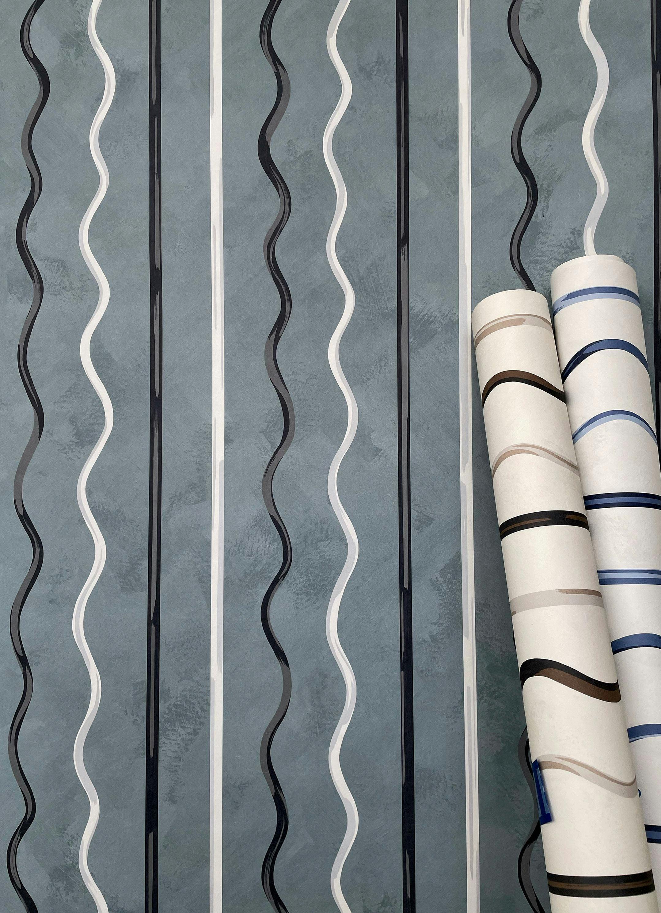 Coupled stripes of highlight and shadow playfully mingle in AFFOGATO. Based on hand painted stripes, swirling line work creates a trompe-l’oeil effect that echoes a charming golden hour at a European cafe. This charismatic small scale design will add depth and dimension to any space.