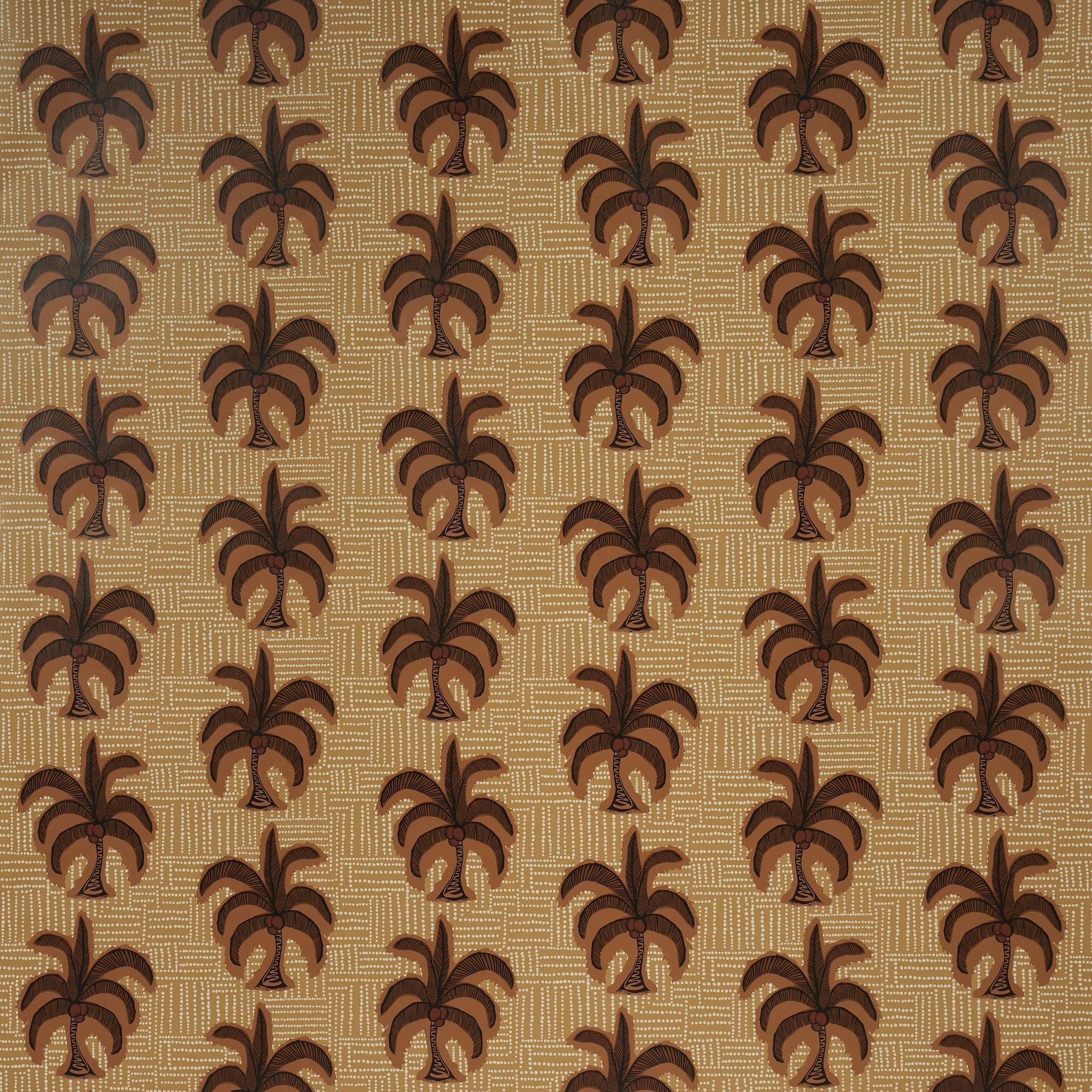 Aqua De Coco evokes the tranquility of the tropics, featuring graceful coconut palms swaying above a canvas of irregular dots. The coconut palms stand tall against a backdrop of whimsical dot patterns, creating a vibrant tableau that invites relaxation and unwinding in a sun-soaked paradise.