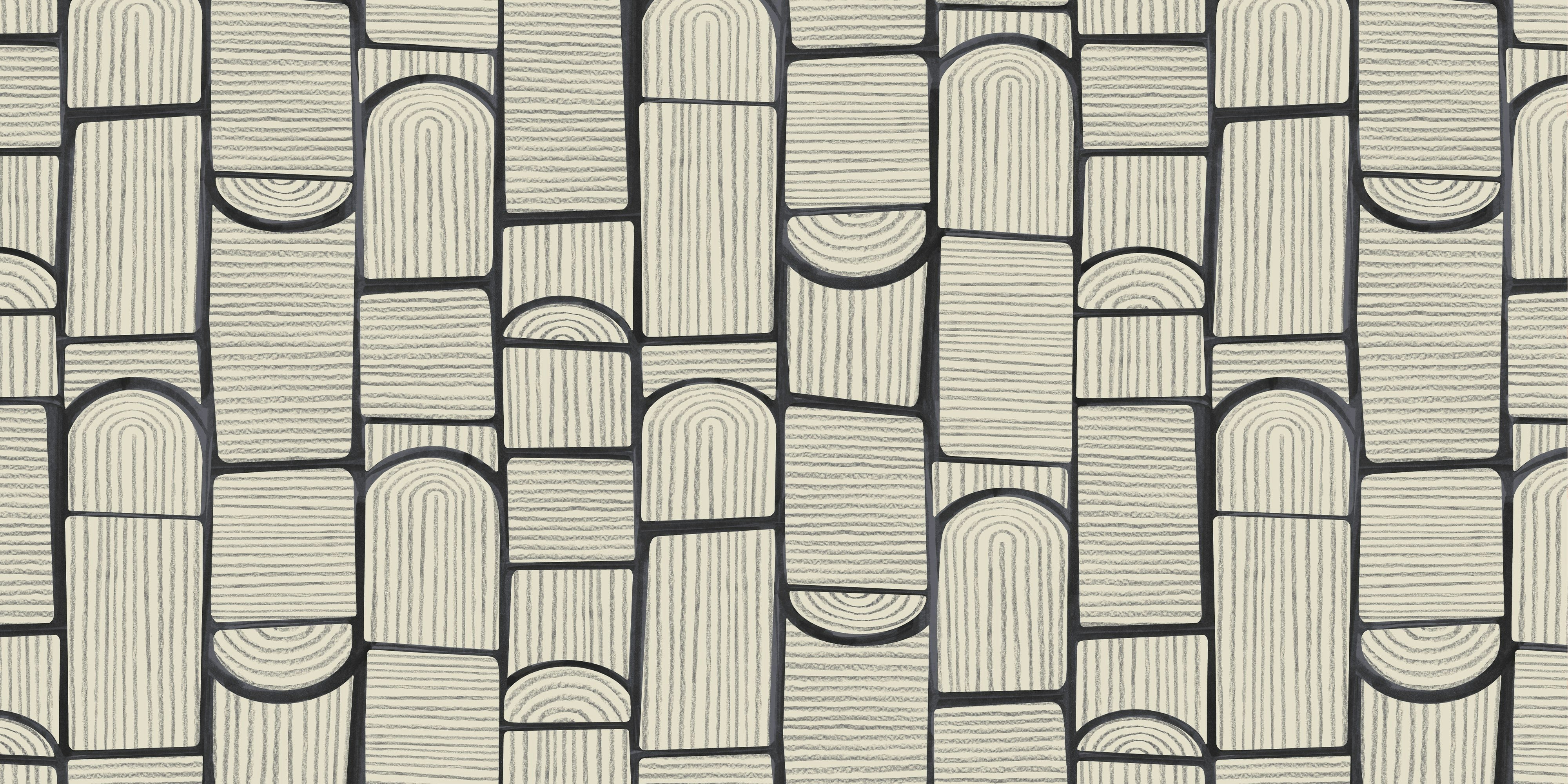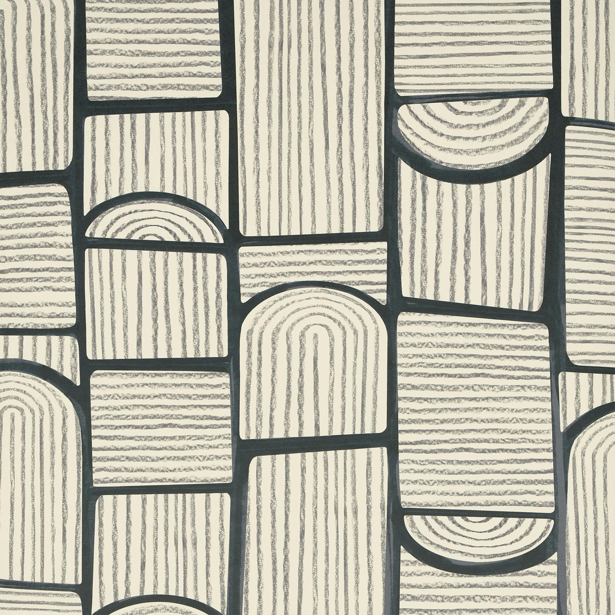 Reminiscent of the architecture of London's Bloomsbury. Textured linework paired with graphic structure create playful relationships and an overall sense of movement. Also available in Peel & Stick in Deep Navy colorway.