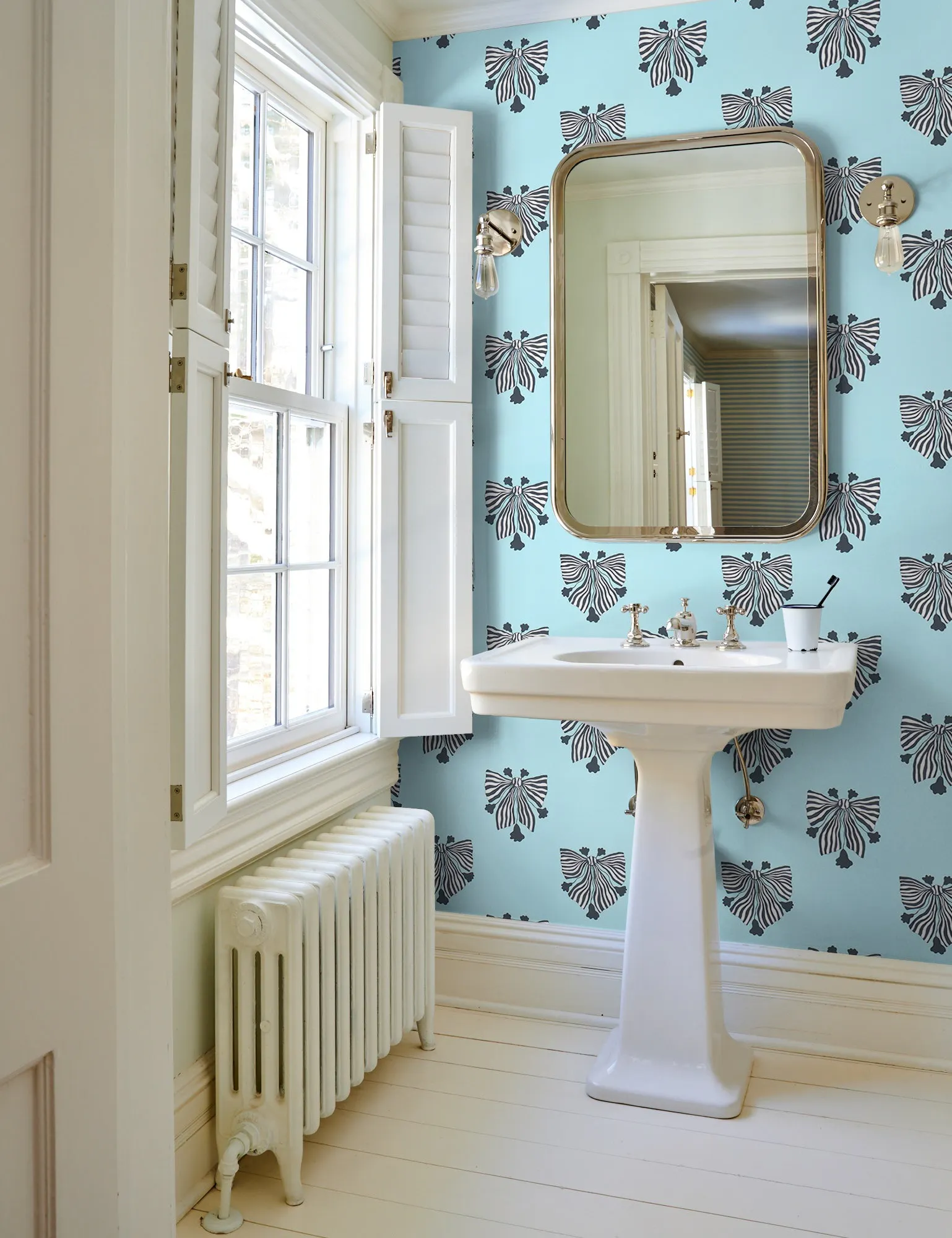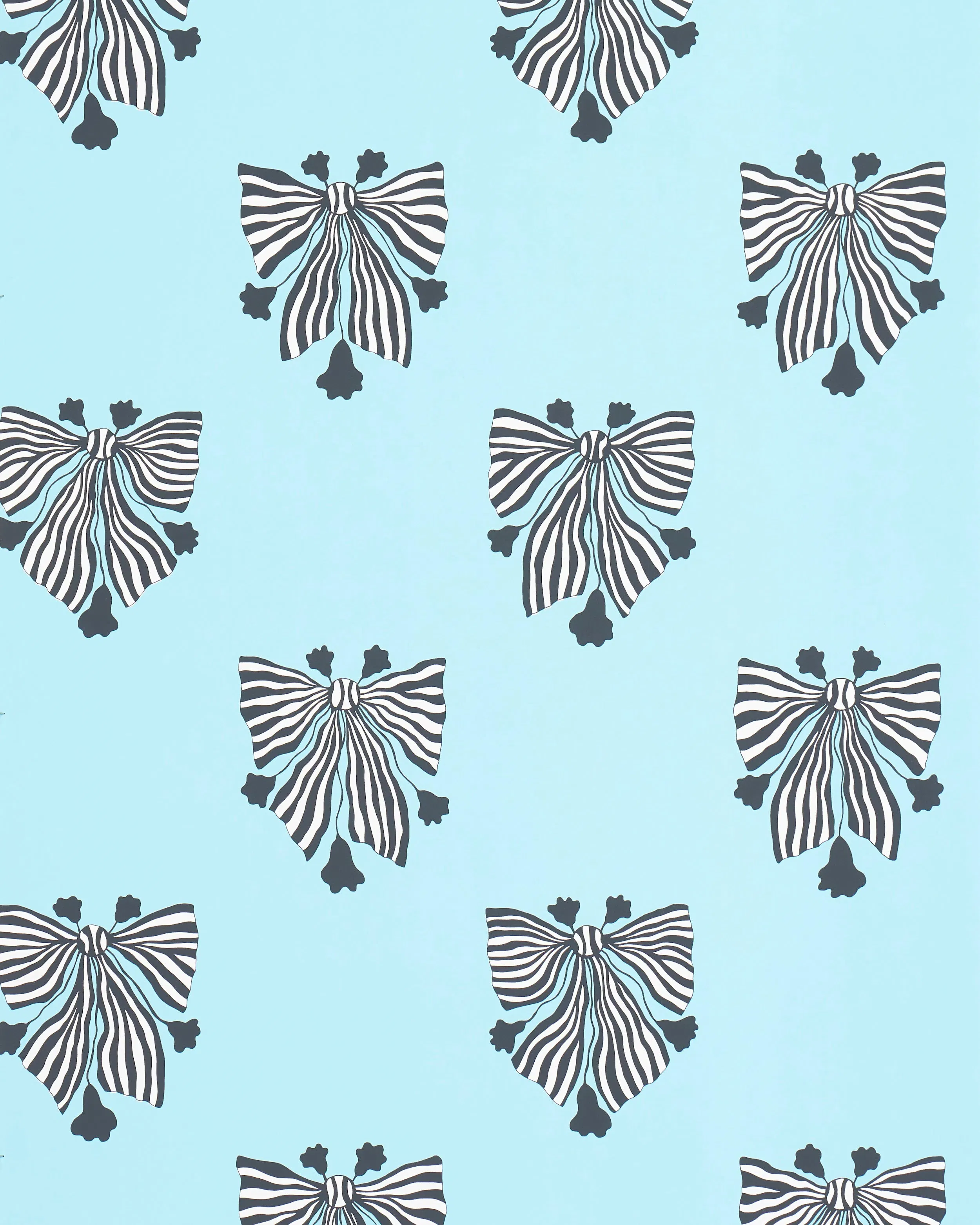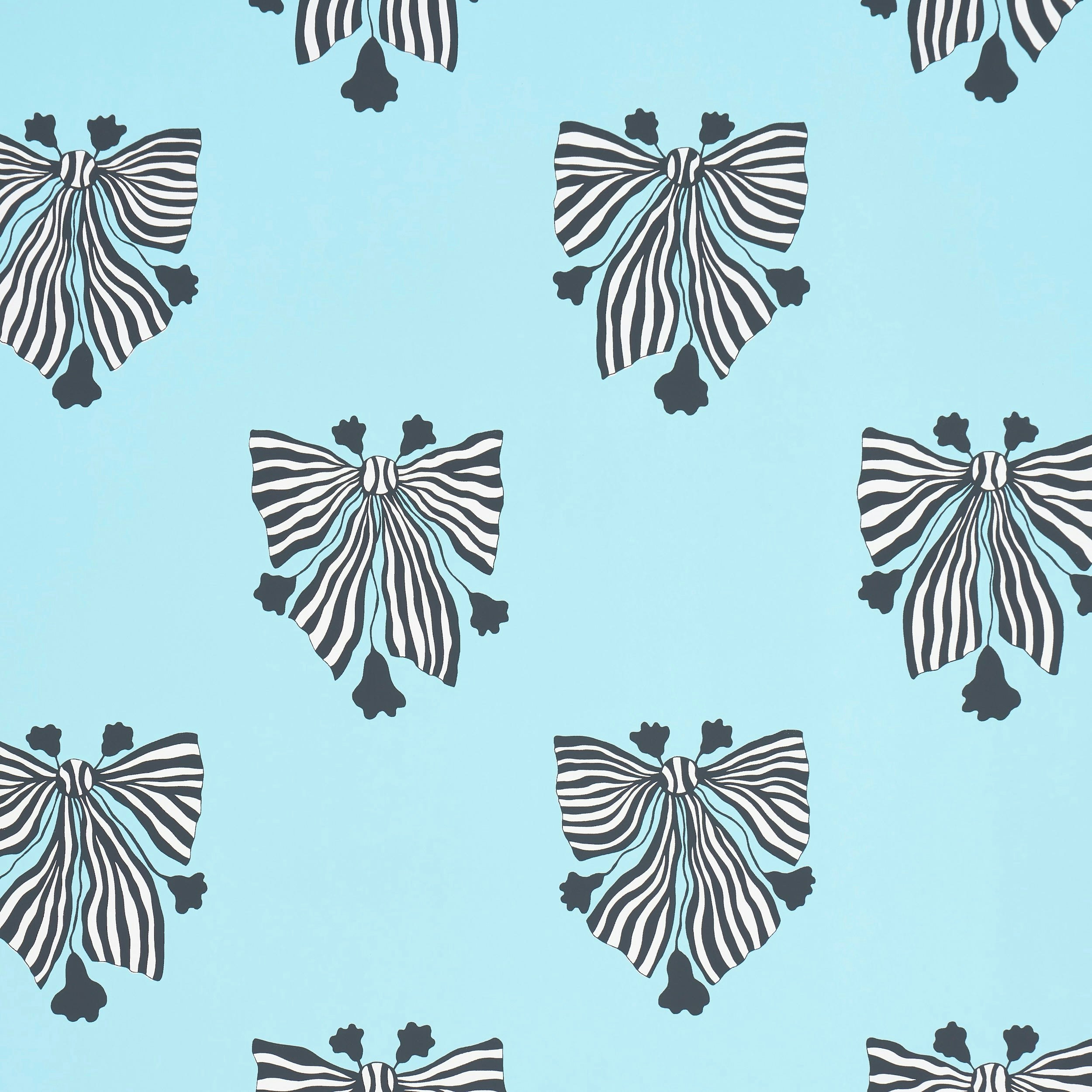 Enhance your home decor with Bow-Wow-Wow, a lively and fashion-inspired wallpaper featuring graphic, striped bows and whimsical tassels. Originally conceived for a shoe design by Marian McEvoy, this charming medium-scale pattern adds a playful touch to any space. Ideal for a dressing room, Bow-Wow-Wow brings a sense of upbeat style and personality to your walls.
