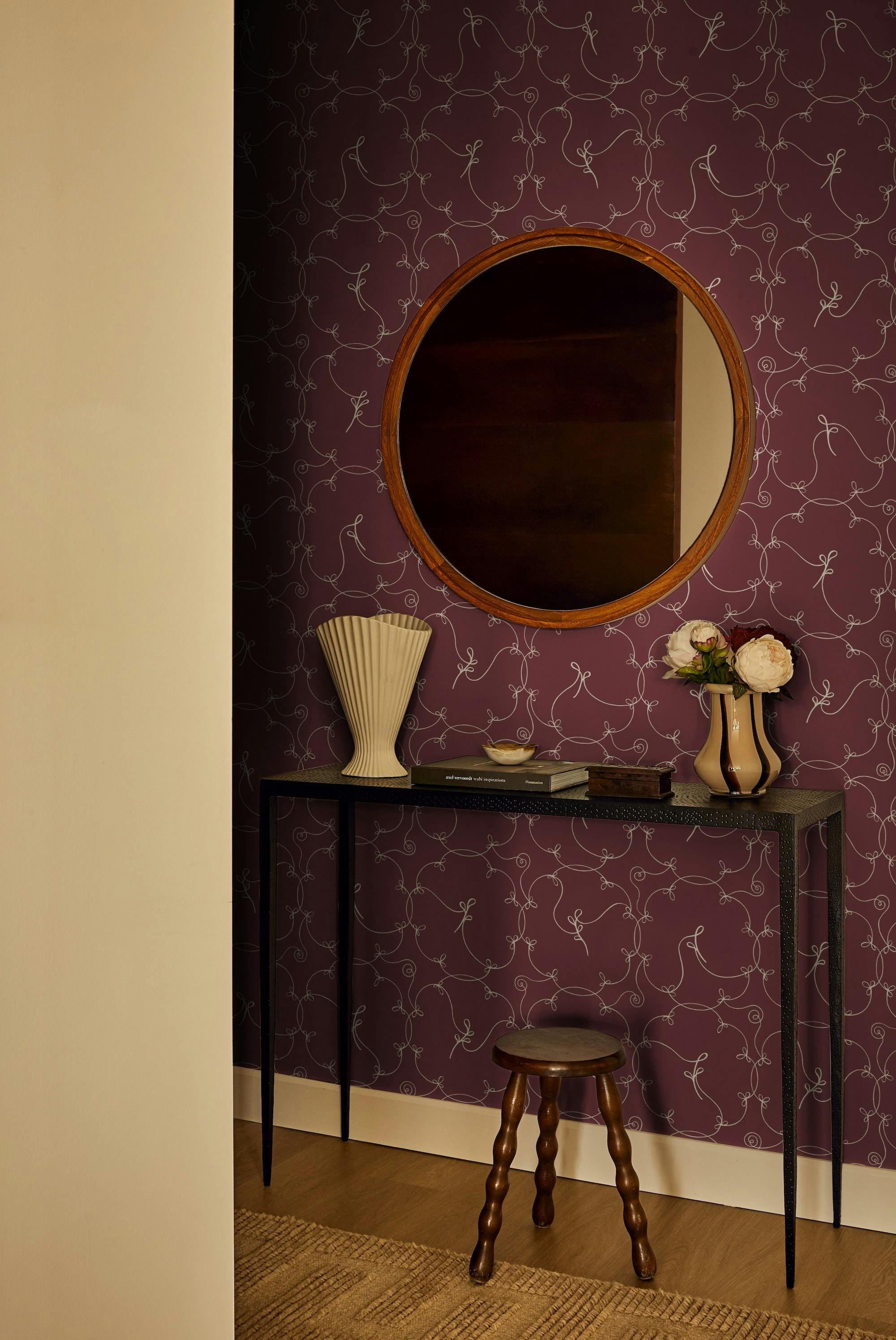 Named after a style of openwork embroidery, BRODERIE is a lyrical design featuring delicate linework with a nod to natural motifs. The two-color design was created as a continuous line drawing in our studio, where the pen is never lifted from the page. The result is an intricate, airy mid-scale design suited for any space.