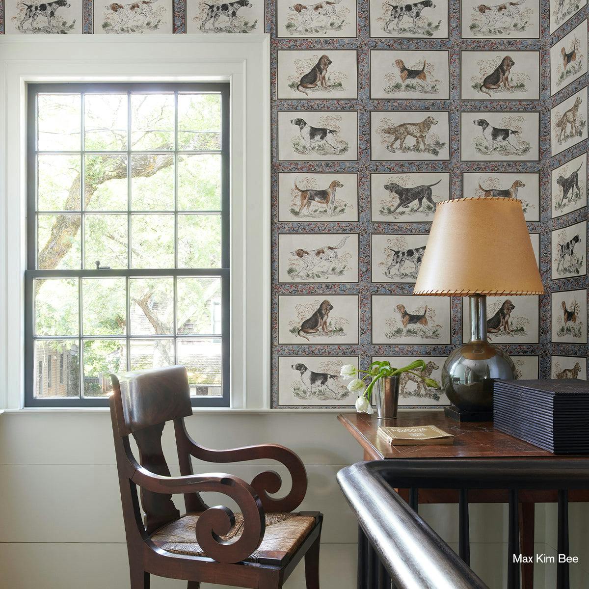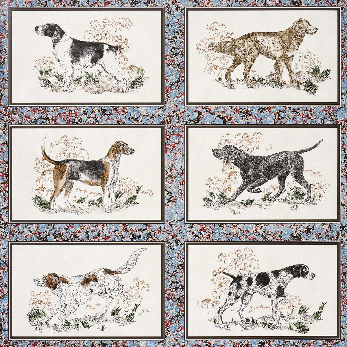 Chaser’s Legacy is a large-scale wallpaper inspired by vintage etchings and original hand-drawn artwork. Featuring a grid of finely detailed dog portraits set against a decorative marbled background, this sophisticated design blends sporty charm with classic elegance. Its subtle tonalities and refined pattern recall hand-colored prints and antique book endpapers—perfect for studies, libraries, or statement walls with personality.