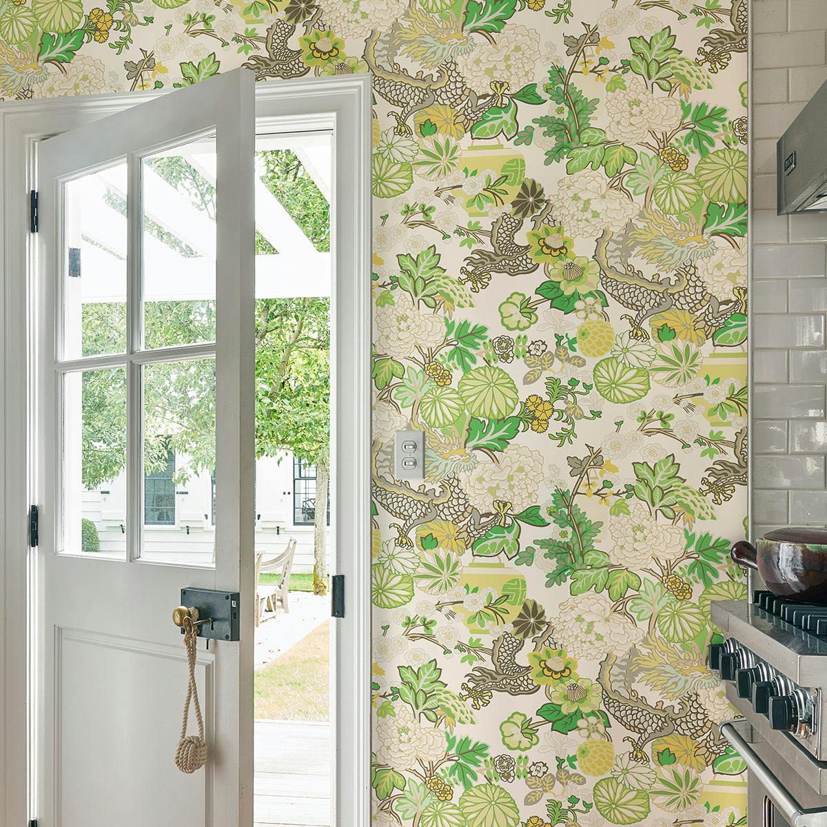 Bring bold sophistication to your space with Schumacher's iconic CHIANG MAI DRAGON wallpaper. An instant favorite since its debut, this best-selling design features a striking chinoiserie motif inspired by a vintage Art Deco print. The vibrant colors and dramatic dragon imagery make CHIANG MAI DRAGON a statement piece that transforms any room into a work of art. Perfect for adding character and elegance to living rooms, bedrooms, dining areas, or powder rooms, this designer wallpaper is a must-have for lovers of high-end home decor.