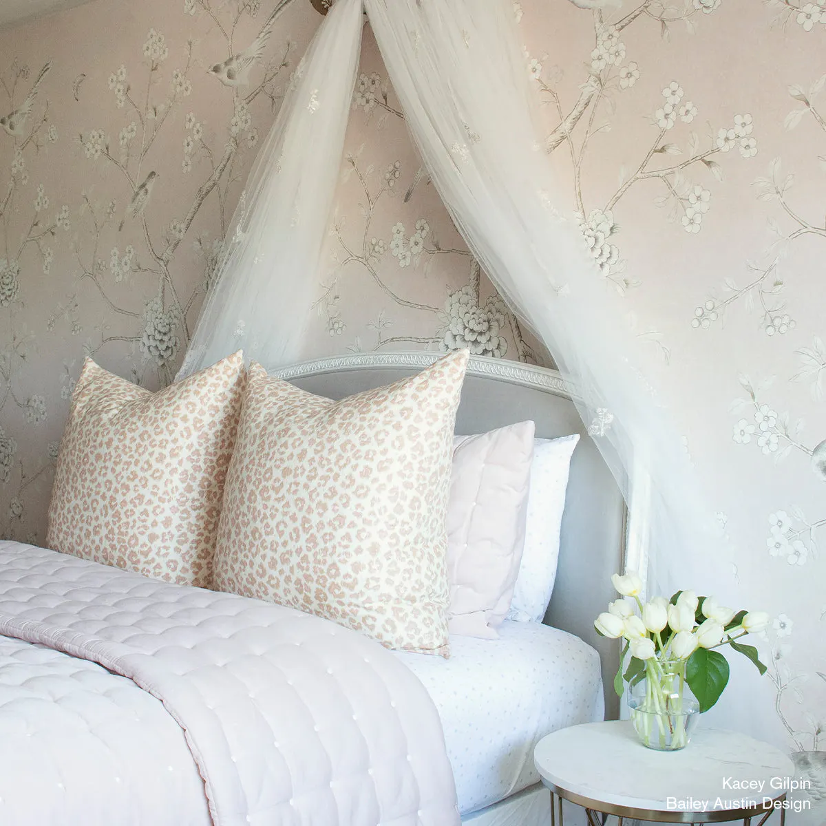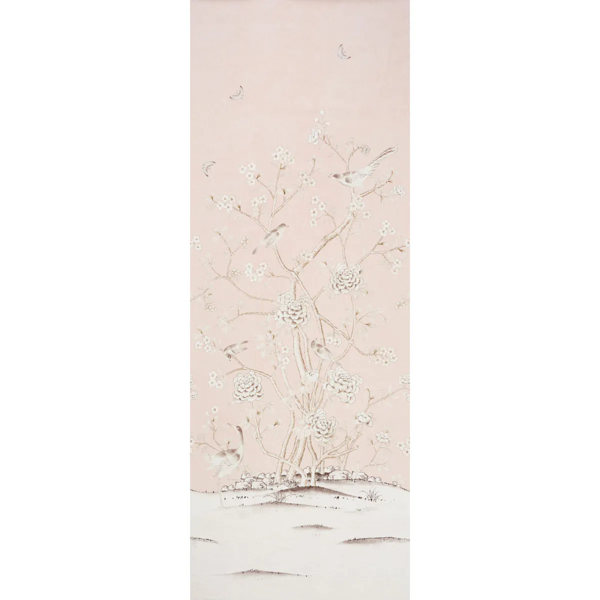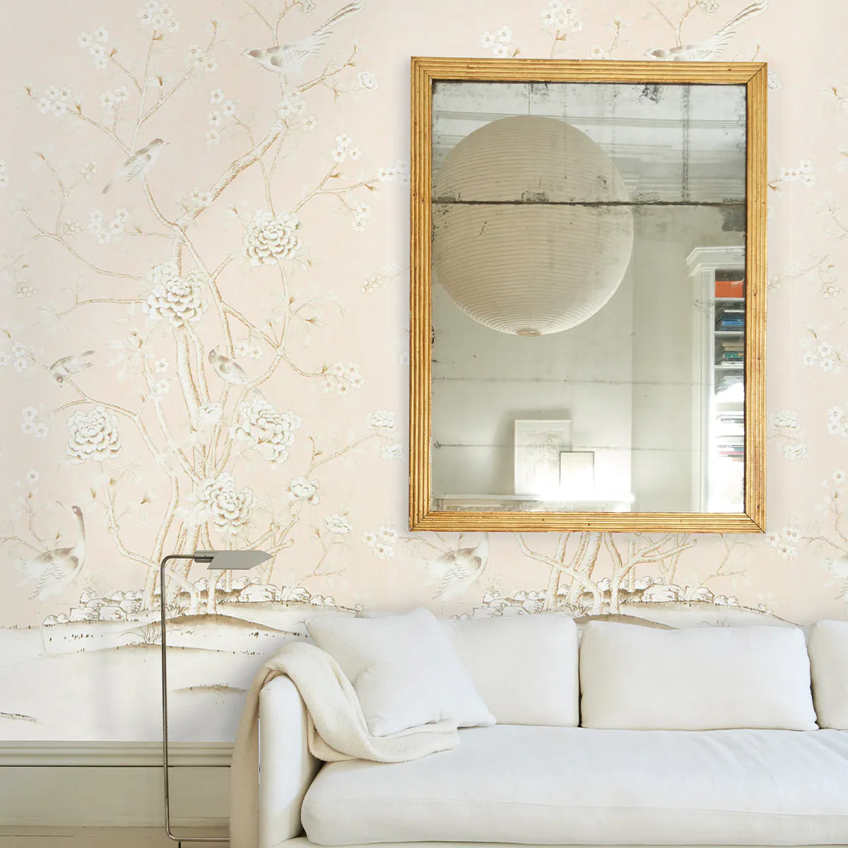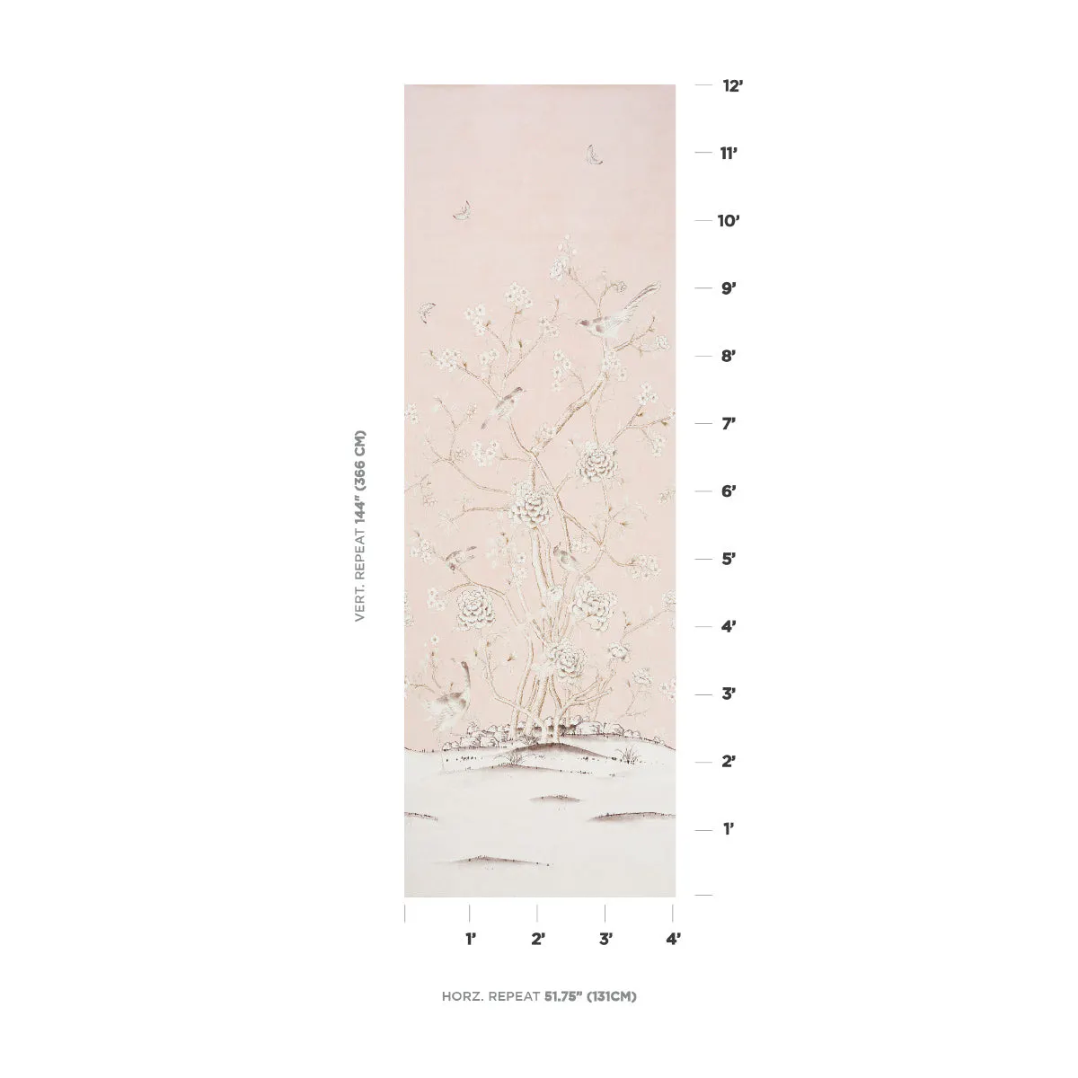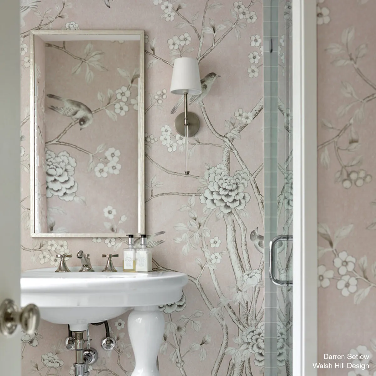 Bring timeless elegance to your space with this exquisite wallpaper design by Mary McDonald for Schumacher. Inspired by an antique Chinese silk panel, this luxurious wallpaper features beautifully rendered exotic birds and delicate cherry blossoms in a rich chocolate colorway. Printed in striking 12-foot panels, this statement wallpaper creates a mural-like effect that’s perfect for dramatic dining rooms, serene bedrooms, or feature walls that deserve a touch of artistry.
