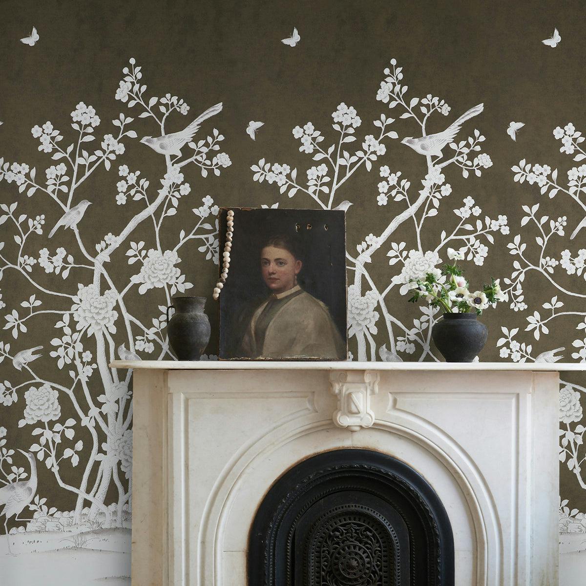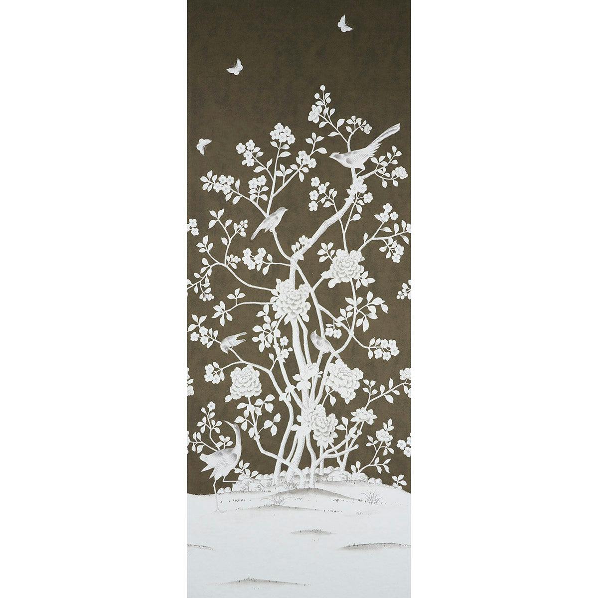 Bring timeless elegance to your space with this exquisite wallpaper design by Mary McDonald for Schumacher. Inspired by an antique Chinese silk panel, this luxurious wallpaper features beautifully rendered exotic birds and delicate cherry blossoms in a rich chocolate colorway. Printed in striking 12-foot panels, this statement wallpaper creates a mural-like effect that’s perfect for dramatic dining rooms, serene bedrooms, or feature walls that deserve a touch of artistry.