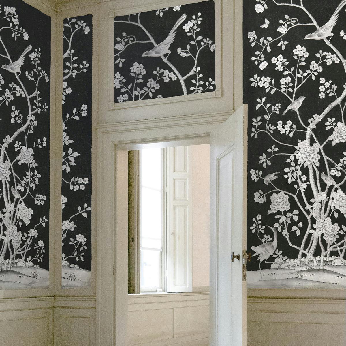 Bring timeless elegance to your space with this exquisite wallpaper design by Mary McDonald for Schumacher. Inspired by an antique Chinese silk panel, this luxurious wallpaper features beautifully rendered exotic birds and delicate cherry blossoms in a rich chocolate colorway. Printed in striking 12-foot panels, this statement wallpaper creates a mural-like effect that’s perfect for dramatic dining rooms, serene bedrooms, or feature walls that deserve a touch of artistry.