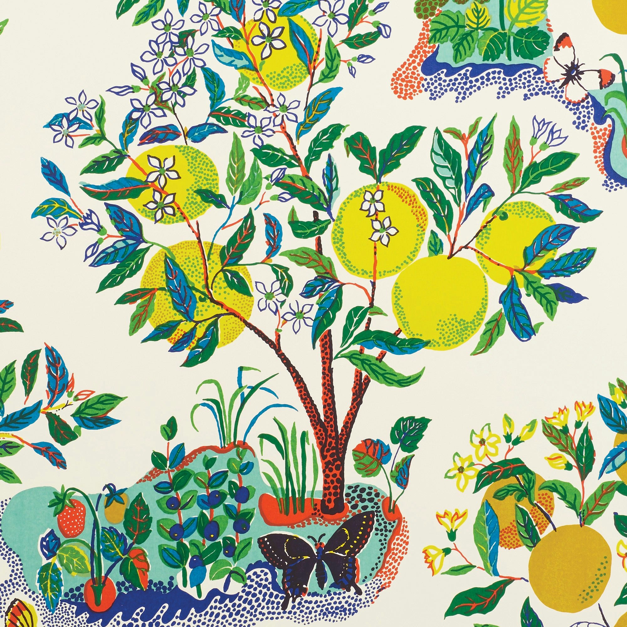From Schumacher, CITRUS GARDEN is a whimsical panel set based on an archival 1947 Josef Frank print.