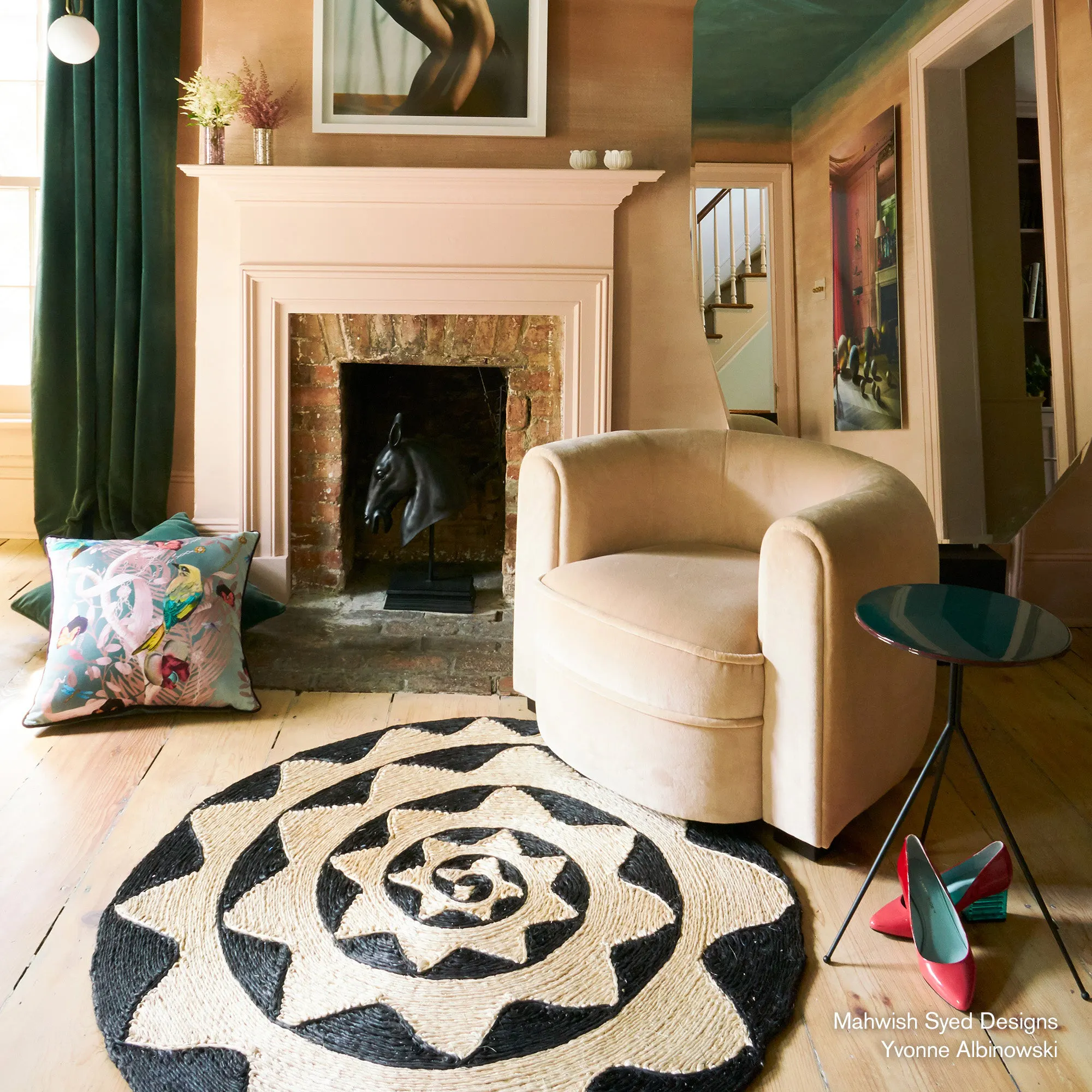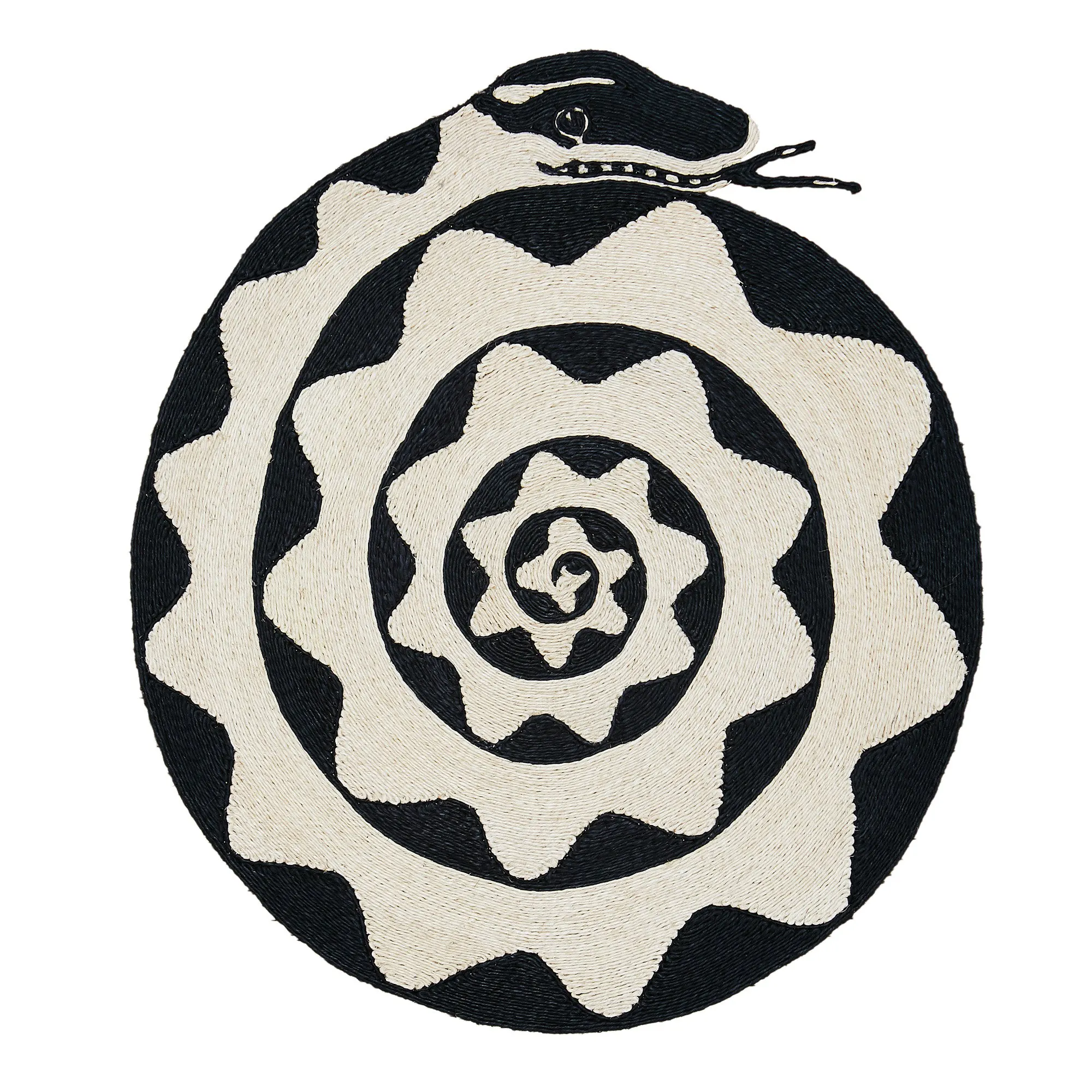 The Espiral Rug is a bold, graphic statement piece handmade from 100% natural abaca fiber by award-winning studio Charlap Hyman & Herrero, recognized with the 2026 National Design Award for Interior Design by the Cooper Hewitt Smithsonian Design Museum. Part of a collaboration between Charlap Hyman & Herrero and Patterson Flynn. A serpent wound into striking concentric circles takes center stage, hand-coiled by skilled artisans into a mesmerizing natural-fiber design that brings a welcome touch of whimsy to any entryway or corner. Graphic, sculptural, and utterly unique. The Espiral is functional art that draws the eye straight to the floor.