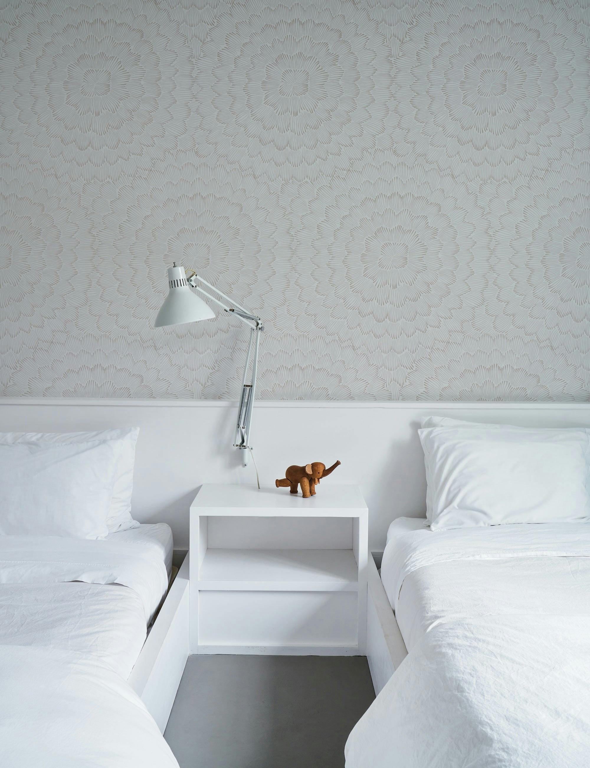 Feather Bloom, a fresh wallpaper design by Celerie Kemble, features a stunning pattern of large scale blossoms that make a grand statement with maximum visual effect.
