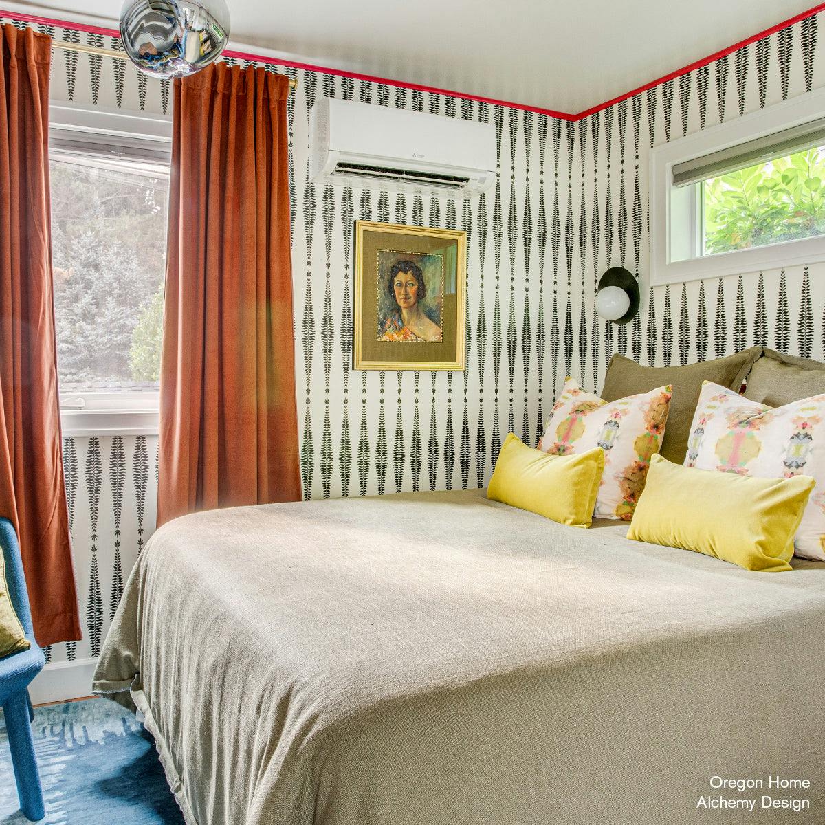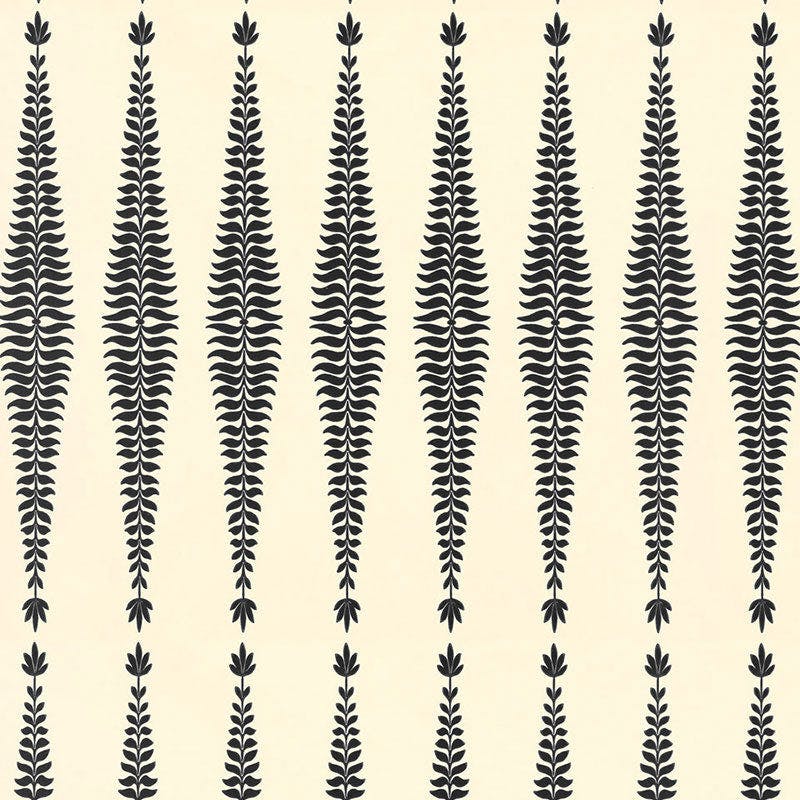 Fern Tree is a striking surface-printed wallpaper featuring abstracted fronds in a graphic diamond layout. With its bold silhouette and rich texture, this Schumacher design brings modern botanical style to any space.
