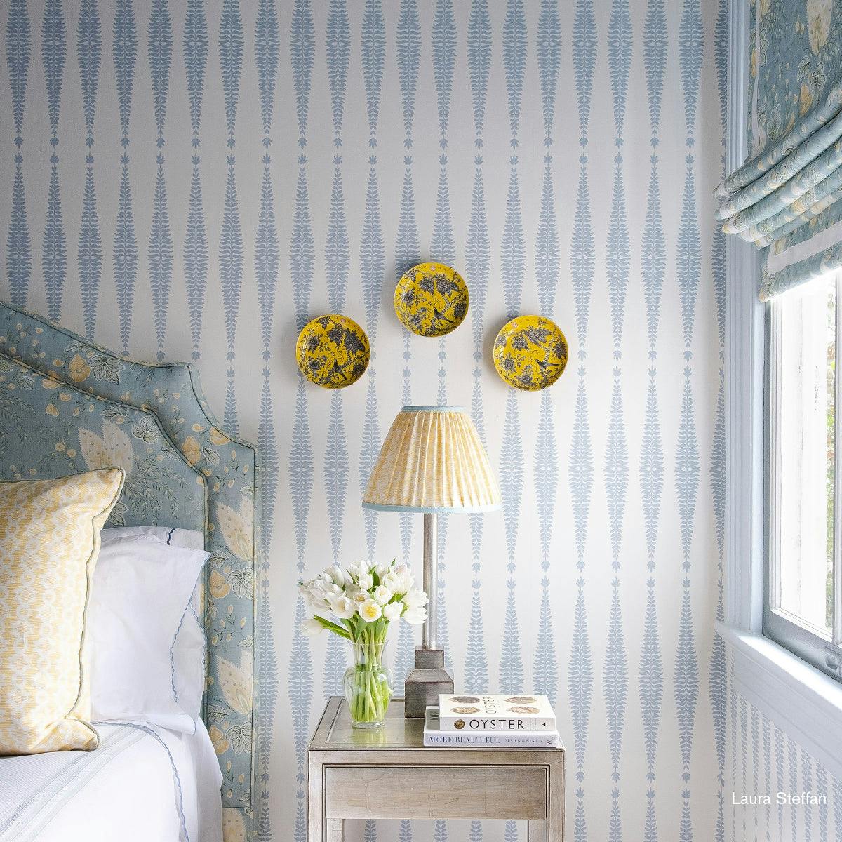 Fern Tree is a striking surface-printed wallpaper featuring abstracted fronds in a graphic diamond layout. With its bold silhouette and rich texture, this Schumacher design brings modern botanical style to any space.