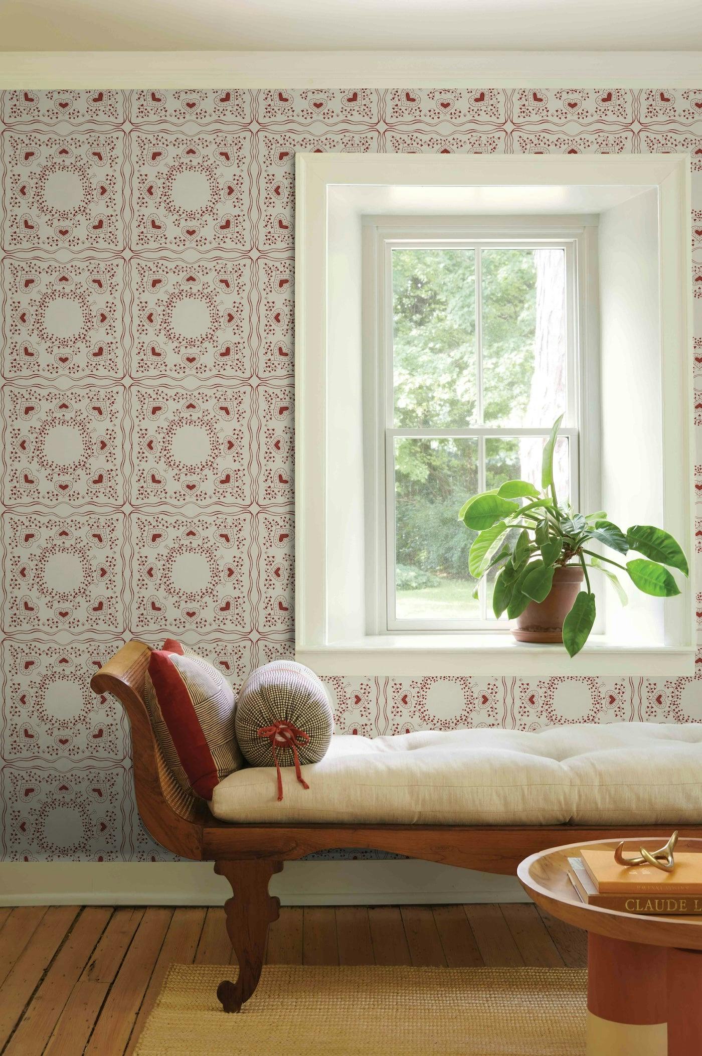 GARDEN OF HEARTS takes inspiration from the quintessential Victorian novel, Alice’s Adventures in Wonderland. The landscape of four card suits, originally drawn in ink, twists and climbs in a large-scale geometric grid. Filled with details like cross-hatching and fine line drawing, the design has an illustrative quality that reveals more the closer you get. This design is sure to bring detail and impact to any space.