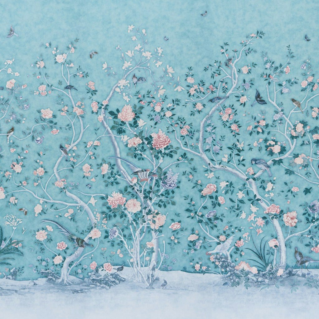 Inspired by an antique screen from her personal collection, Mary McDonald’s Les Oiseaux Panel Set showcases a timeless design featuring graceful birds perched among the lush branches of blooming peony trees. This exquisite three-panel wallpaper offers a delicate hand-painted aesthetic, bringing a touch of nature’s beauty to your interior design. Perfect for creating an enchanting atmosphere in your living room, dining room, or bedroom, this luxury wallpaper elevates your space with its elegant charm and sophisticated color palette. Transform your home decor with this stunning wallpaper panel set and add a serene, artistic element to any room.