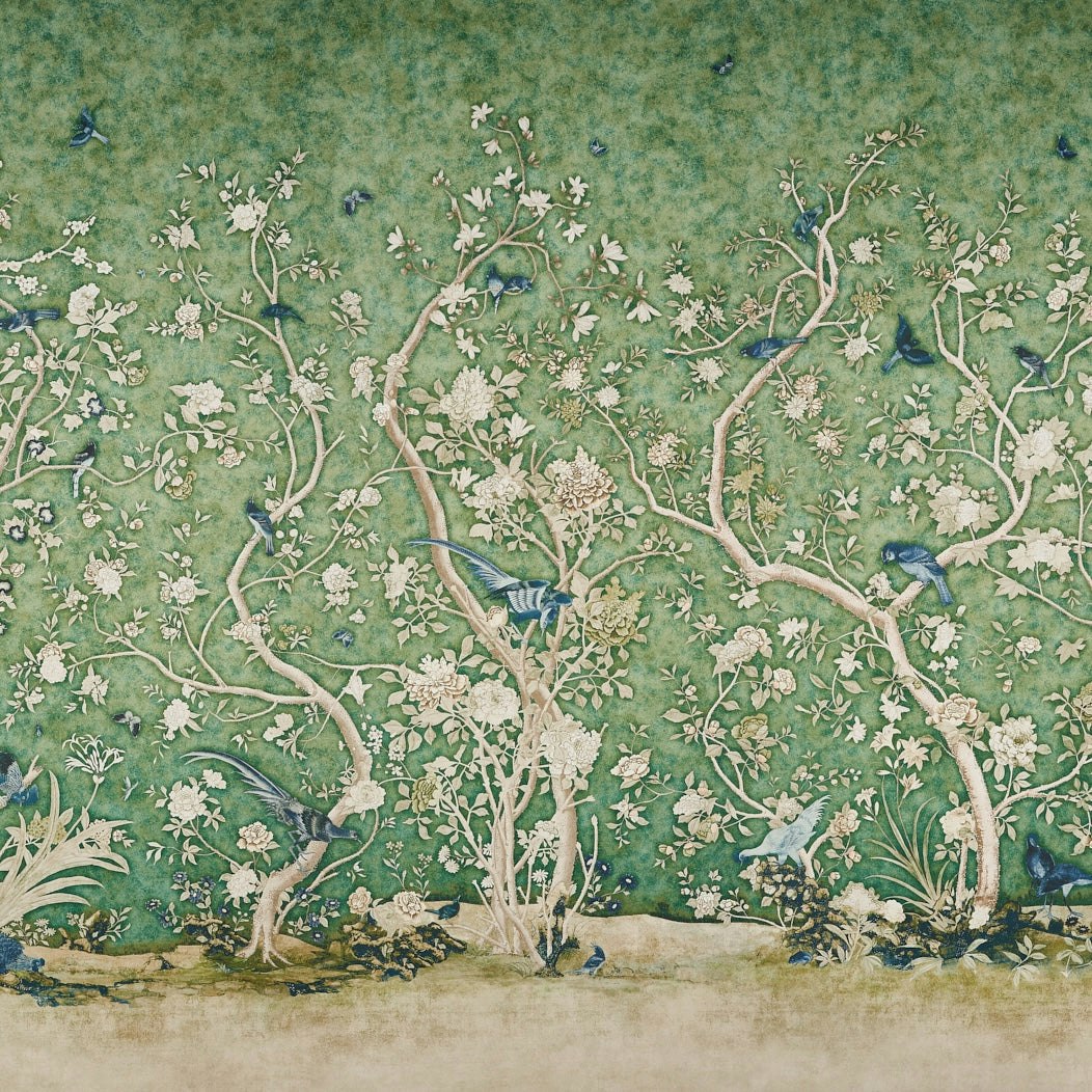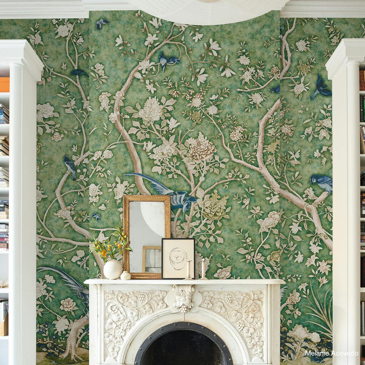 Inspired by an antique screen from her personal collection, Mary McDonald’s Les Oiseaux Panel Set showcases a timeless design featuring graceful birds perched among the lush branches of blooming peony trees. This exquisite three-panel wallpaper offers a delicate hand-painted aesthetic, bringing a touch of nature’s beauty to your interior design. Perfect for creating an enchanting atmosphere in your living room, dining room, or bedroom, this luxury wallpaper elevates your space with its elegant charm and sophisticated color palette. Transform your home decor with this stunning wallpaper panel set and add a serene, artistic element to any room.