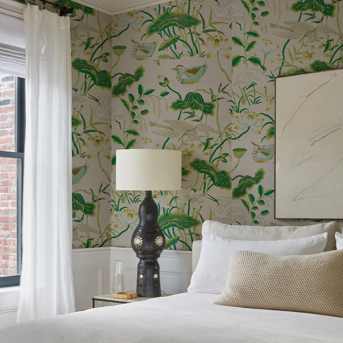 Lotus Garden by Schumacher is an enchanting wallpaper design, faithfully recreated from a 1920s archival document. Inspired by traditional Japanese natural motifs, this timeless pattern brings elegance, serenity, and historical charm to any space.