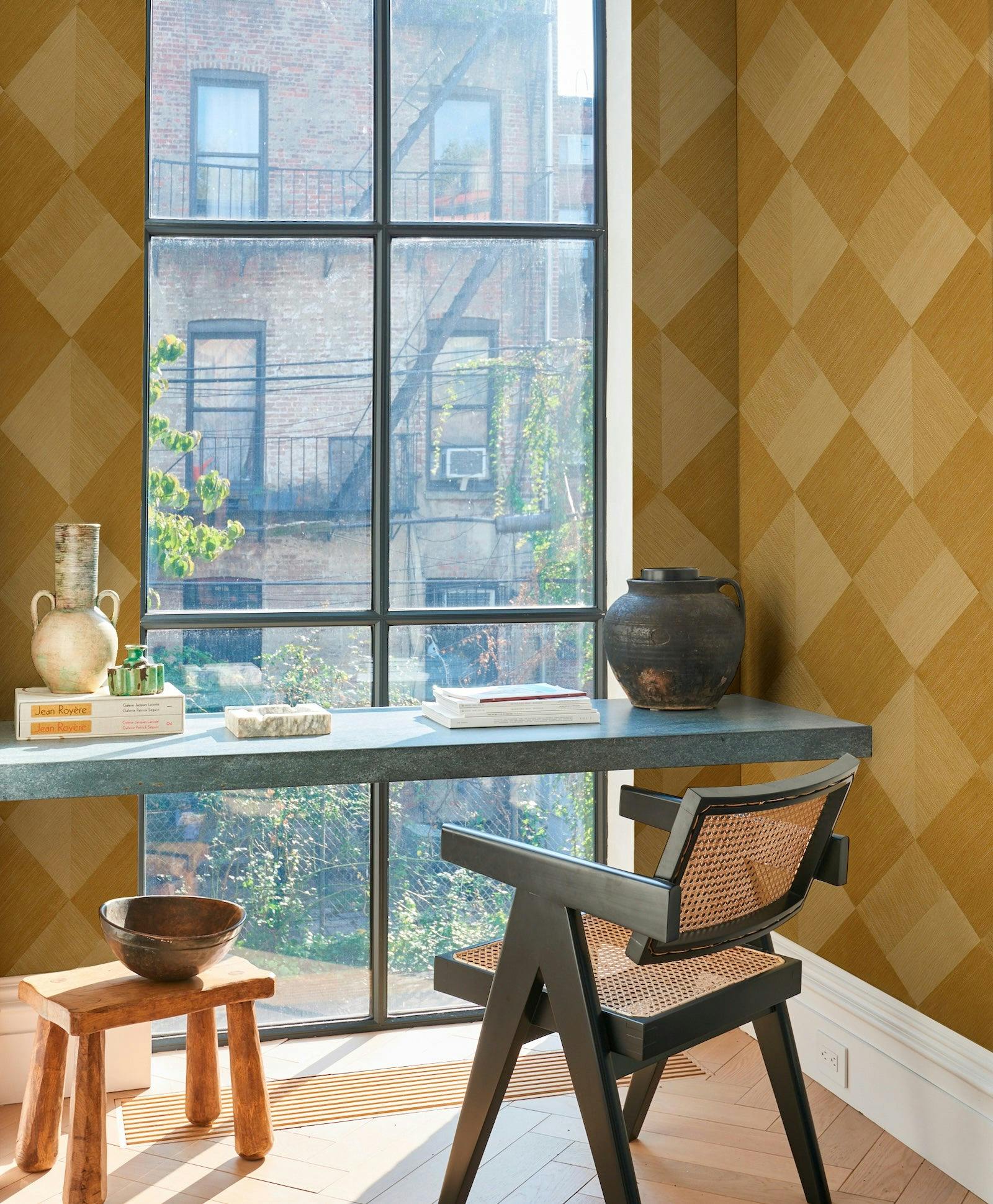 MAESTRO is a mosaic arrangement of diamond shapes in a geometric rhythm inspired by parquetry. This graphic, mid-scale design features directional, hand-placed Haruki Sisal pieces highlighting the material’s natural sheen. This masterful, artisanal grasscloth wallcovering will bring impact and richness to any space. Color variations and subtle irregularities are inherent to this wallpaper’s natural fibers and artisanal beauty.