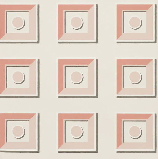 This striking geometric design just begs for the ceiling. Stylized panels with black and white strokes playfully capture architectural detail in two dimensions.