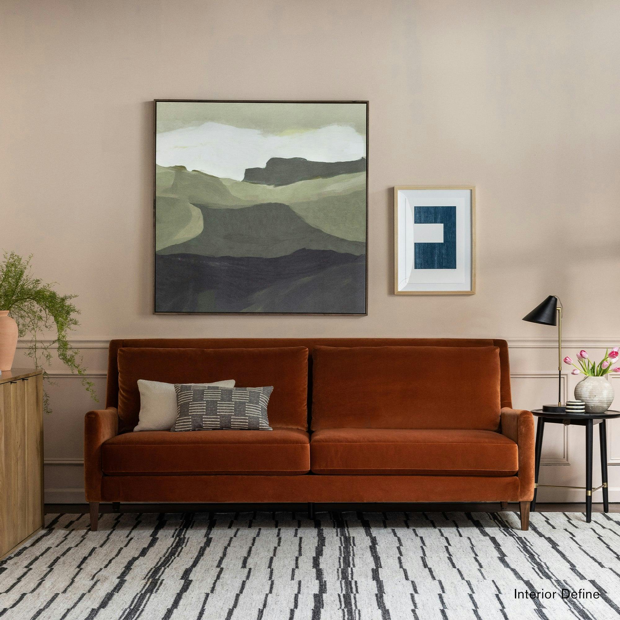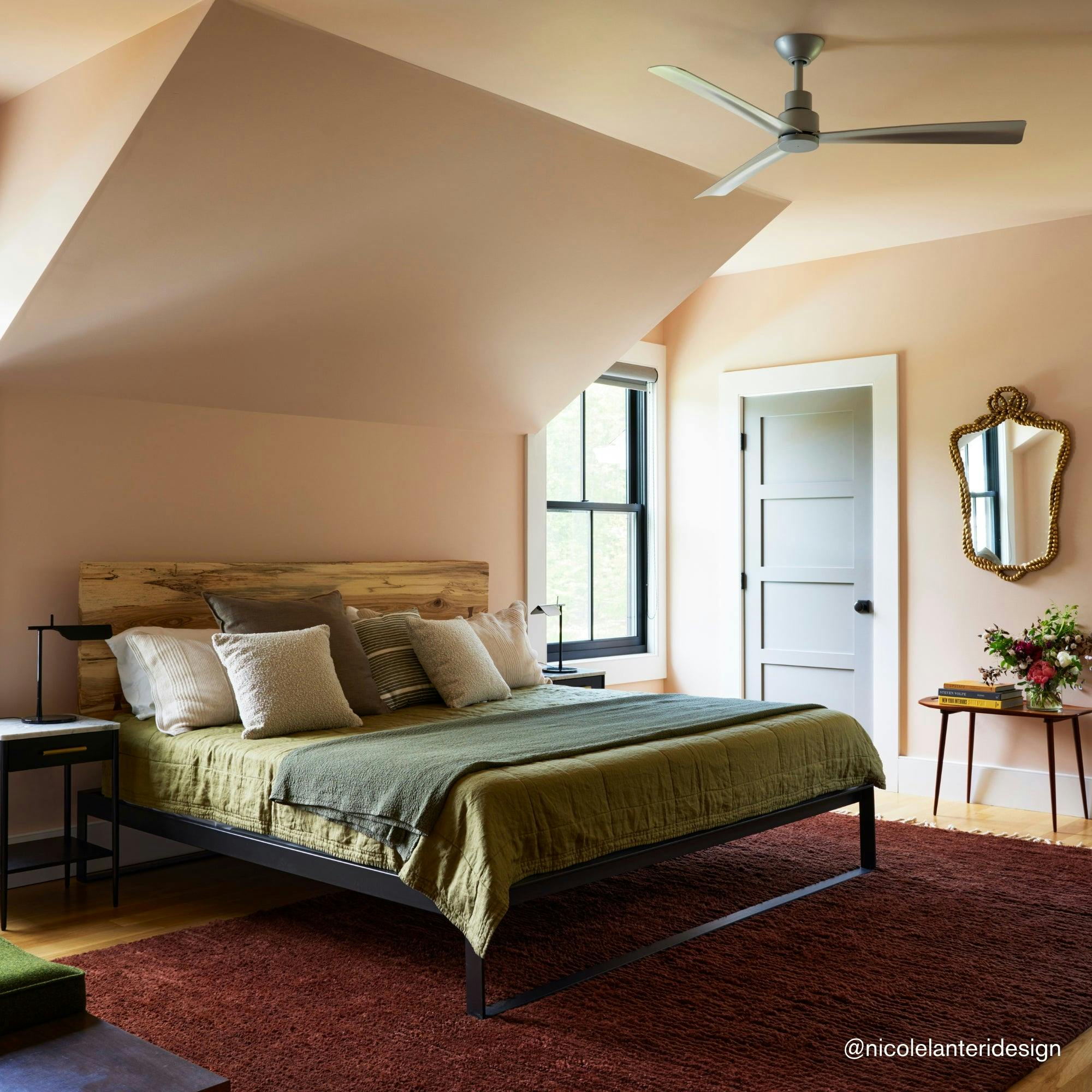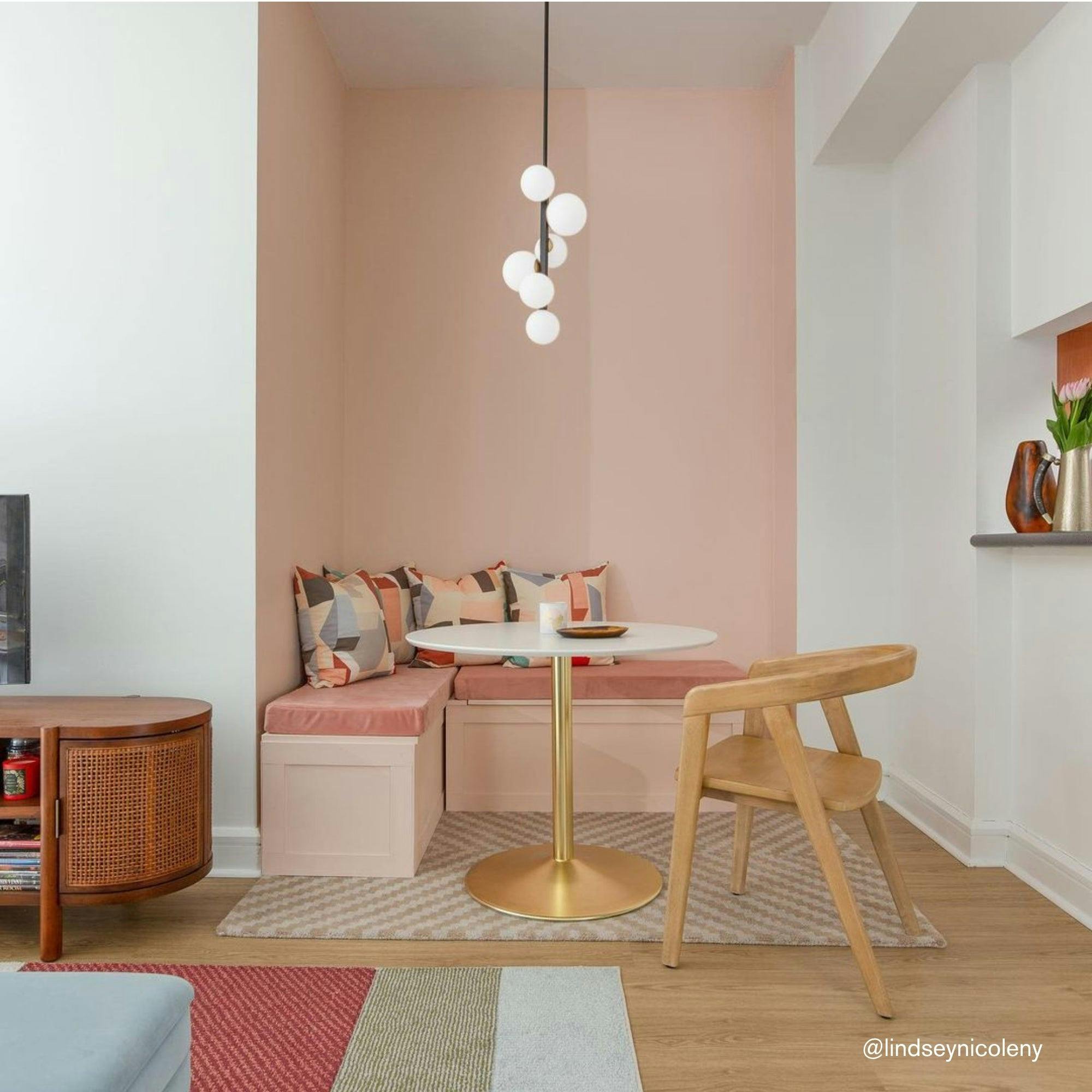 Warm, soothing, muted pink with a hint of gray. Adds personality and a point of view to a room without overpowering.