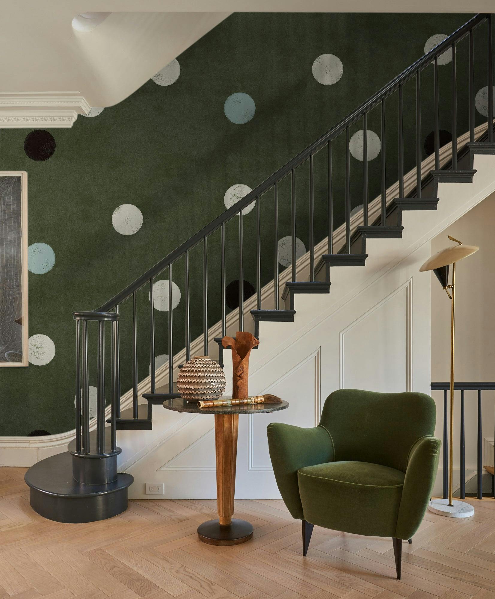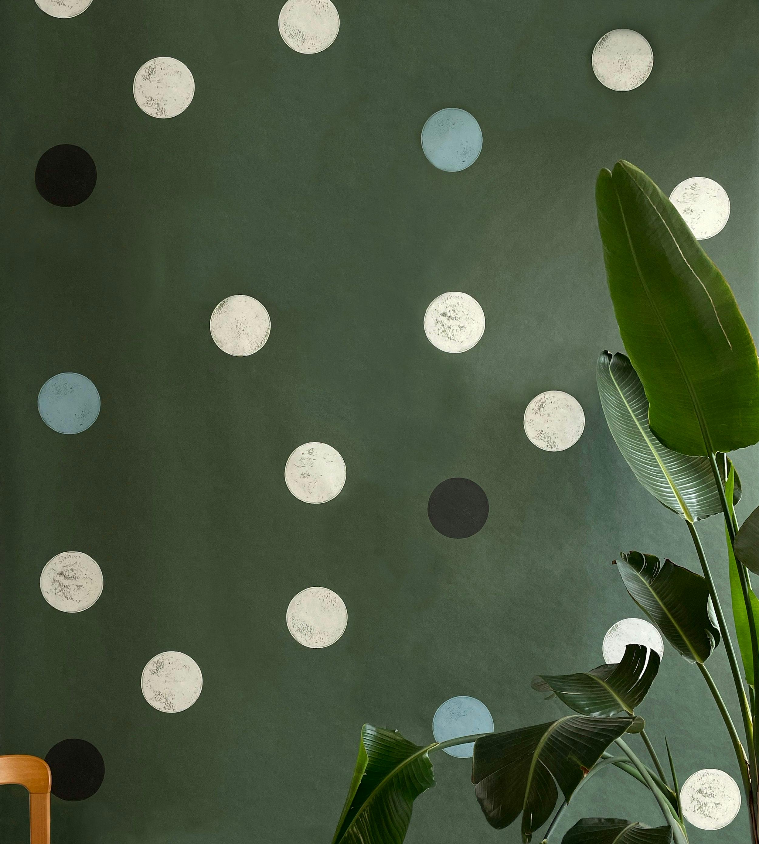 MONTE CARLO is an abstracted, larger than life interpretation of dots on dice. In this 7’ design, renditions of hand stamped dots land on a vast, subtle textured ground. The graphic pattern and extra-large scale create a statement mural effect for any space.