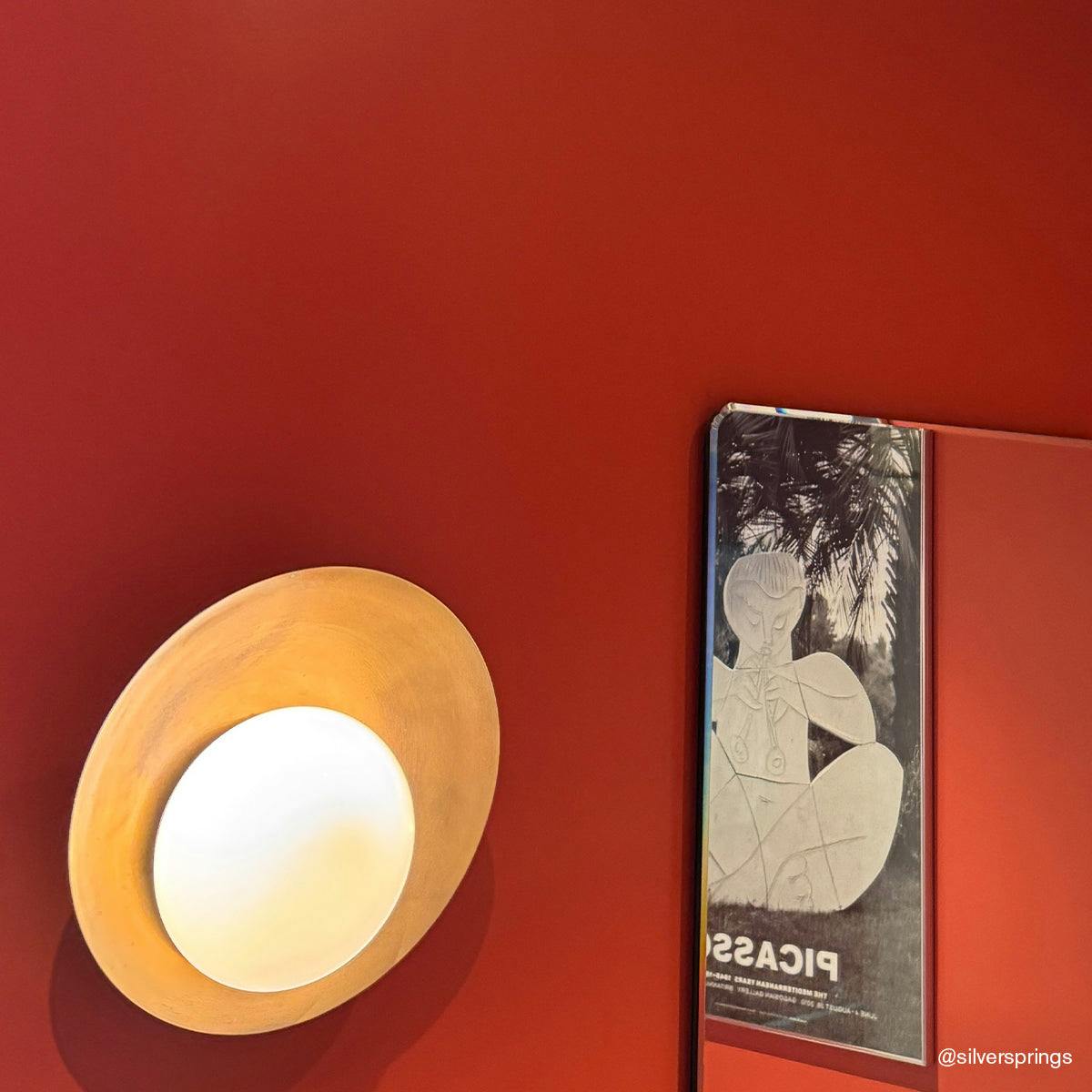Red with a hint of orange. Perfect for an accent wall or a small space.
