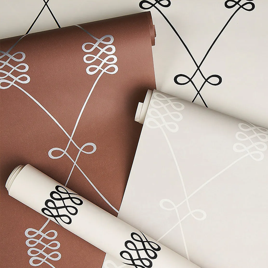 A swirling interpretation of a classic trellis motif, Nicolette's stylized pattern boasts a nice scale and sophisticated versatility for a wallcovering that works in a range of interiors.