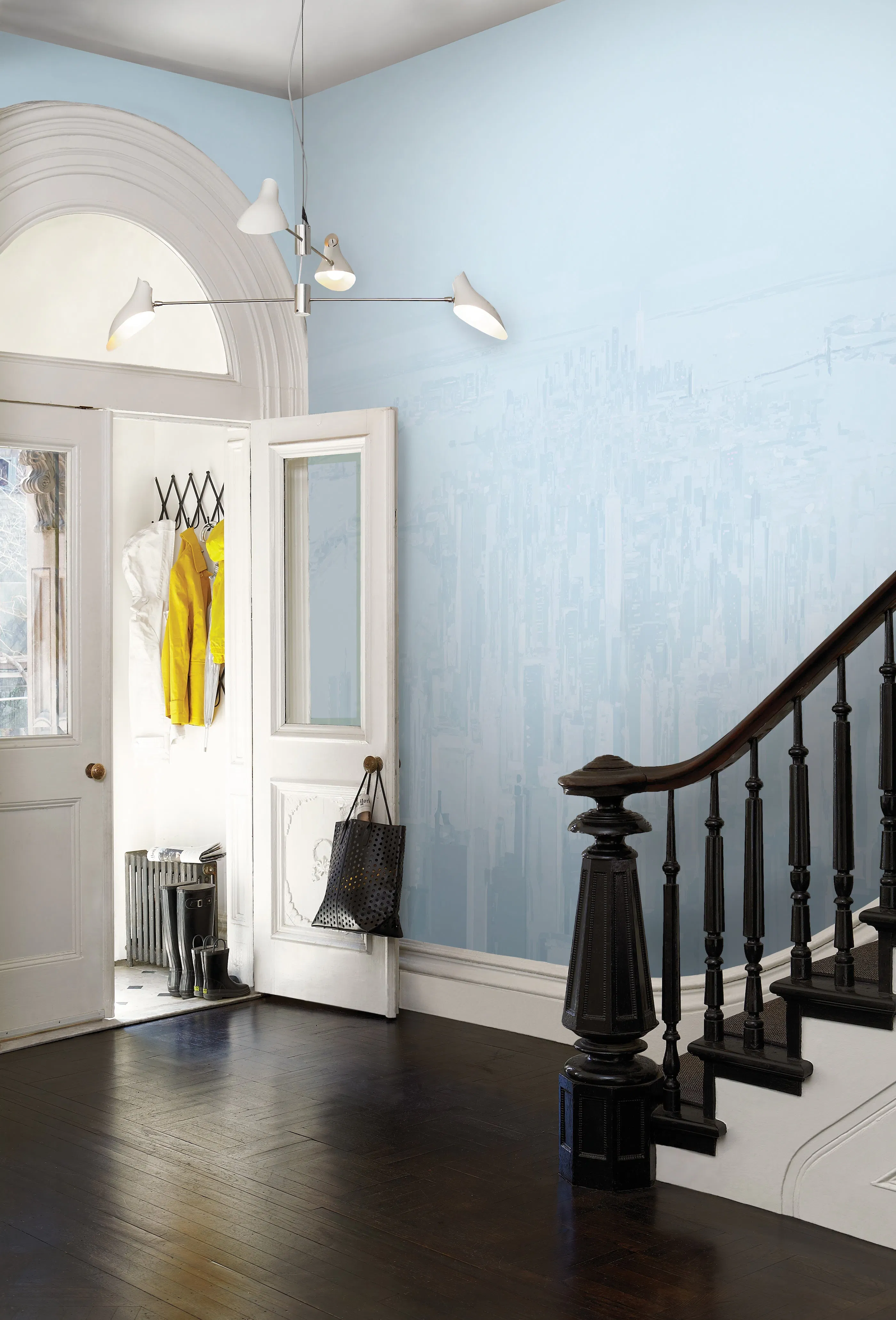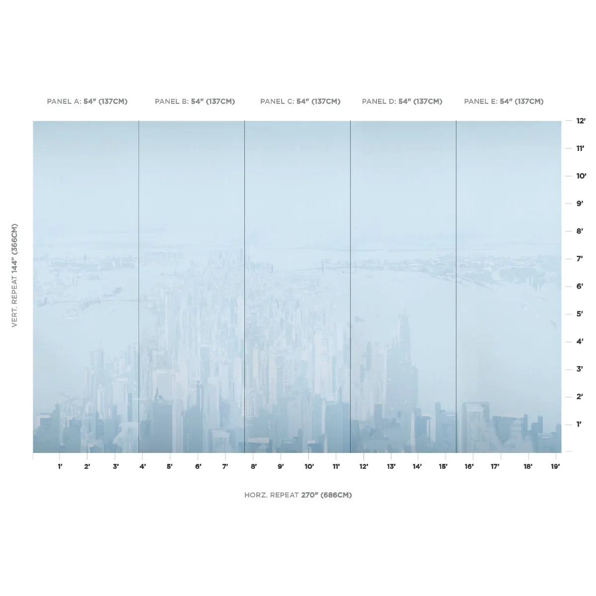 Illustrator Pascal Campion created new original artwork for this sublime, sweeping design. Part of the New Yorker Collection, Pascal Campion’s New York Skyline is a monumental five-panel wallpaper set rendered in an ethereal tonal palette. Accentuated by the interesting shadow effects of sunrise and sunset, this dramatic view of Manhattan makes a sophisticated, contemporary statement.