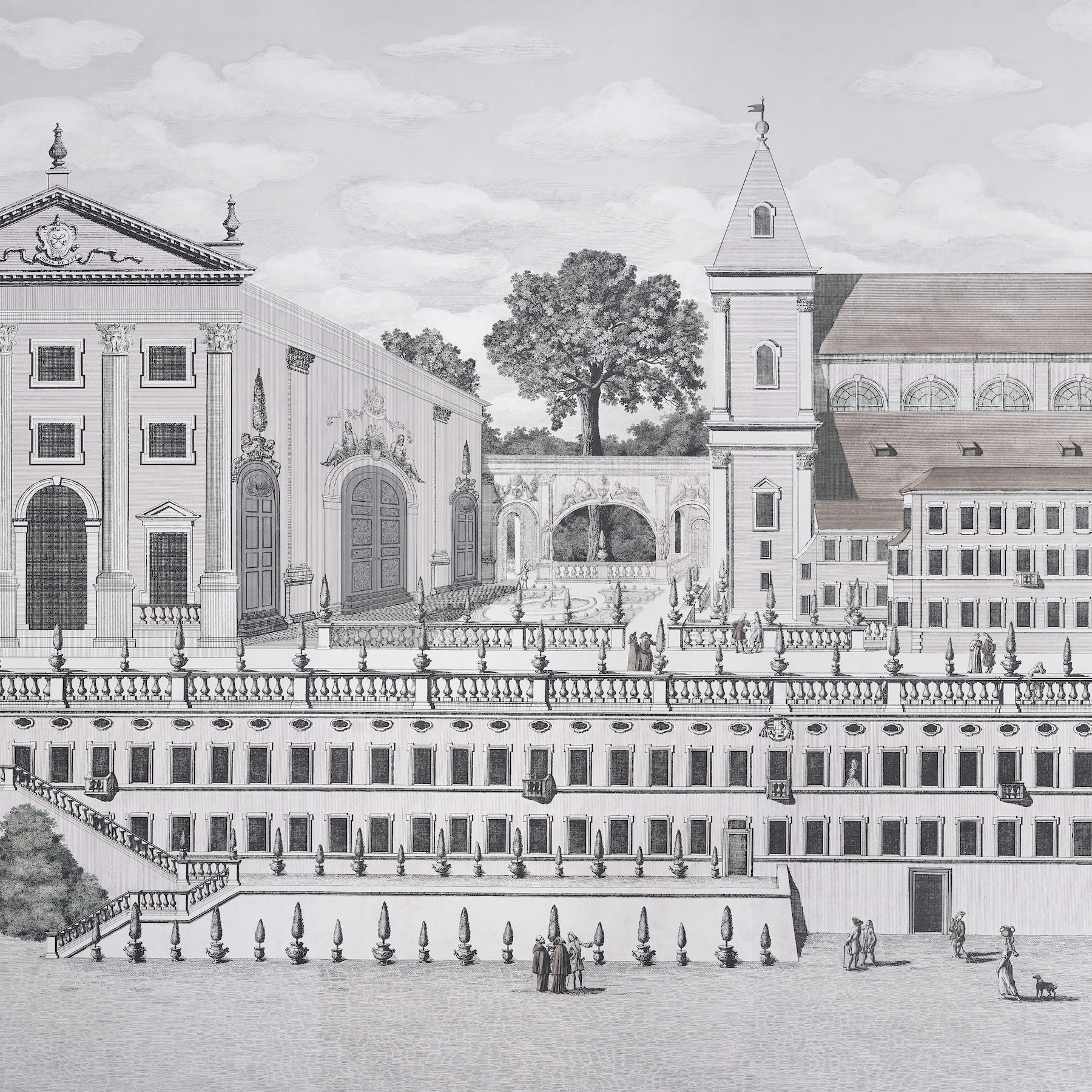 Inspired by an antique document, Piazza Firenze in document is a splendid three-panel wallpaper set designed by Johnson Hartig of Libertine. This splendid architectural panorama is beautifully detailed and printed on uncoated paper for a marvelous antique effect.