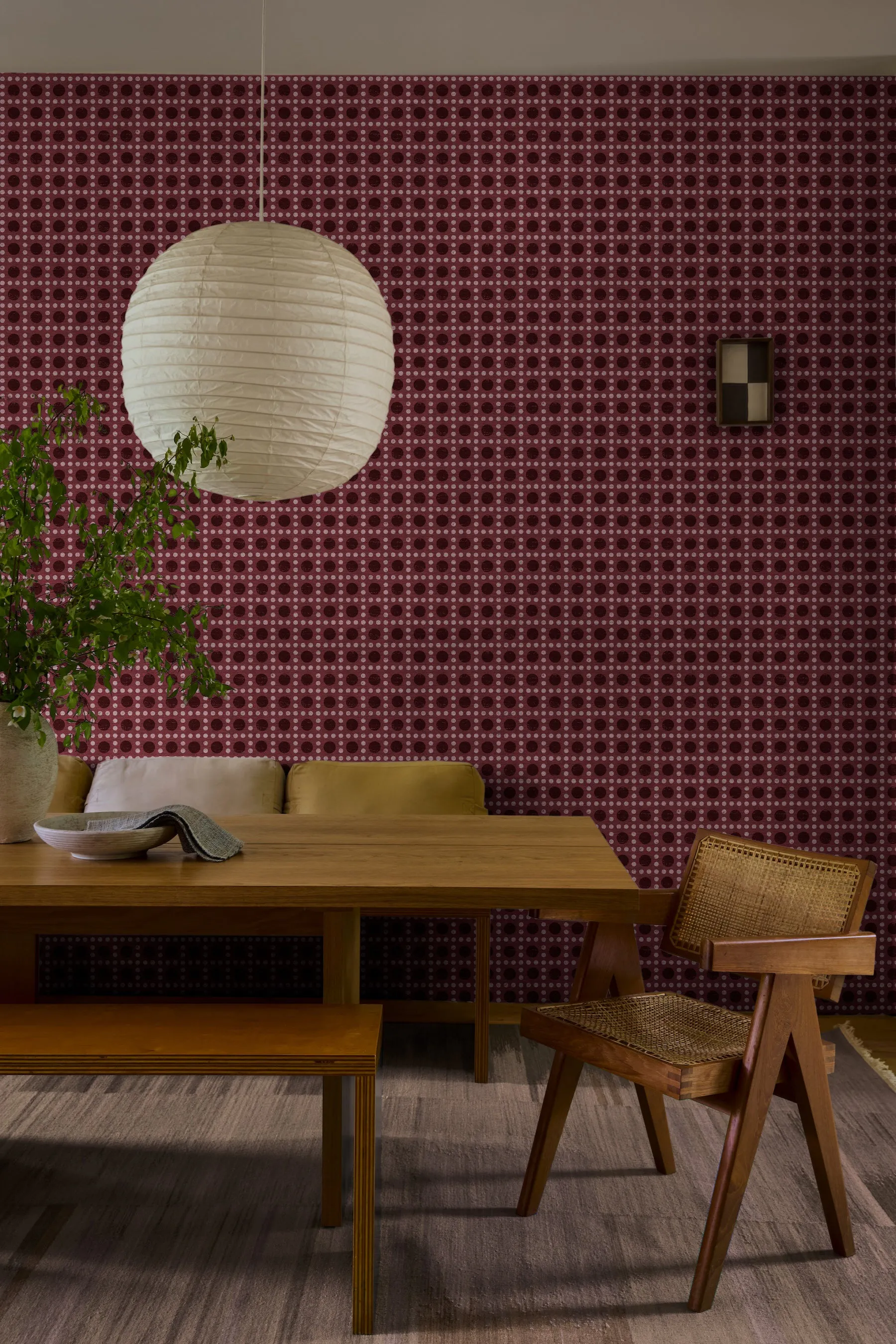 Inspired by Italian candies, PUNTINI SISAL is all about simplistic geometric texture. The tonal color of the gridded dots, screen-printed by hand on Haruki Sisal, creates a beautifully soft surface on top of the woven sisal ground. Color variations and subtle irregularities are inherent to this wallpaper’s natural fibers and handmade beauty.