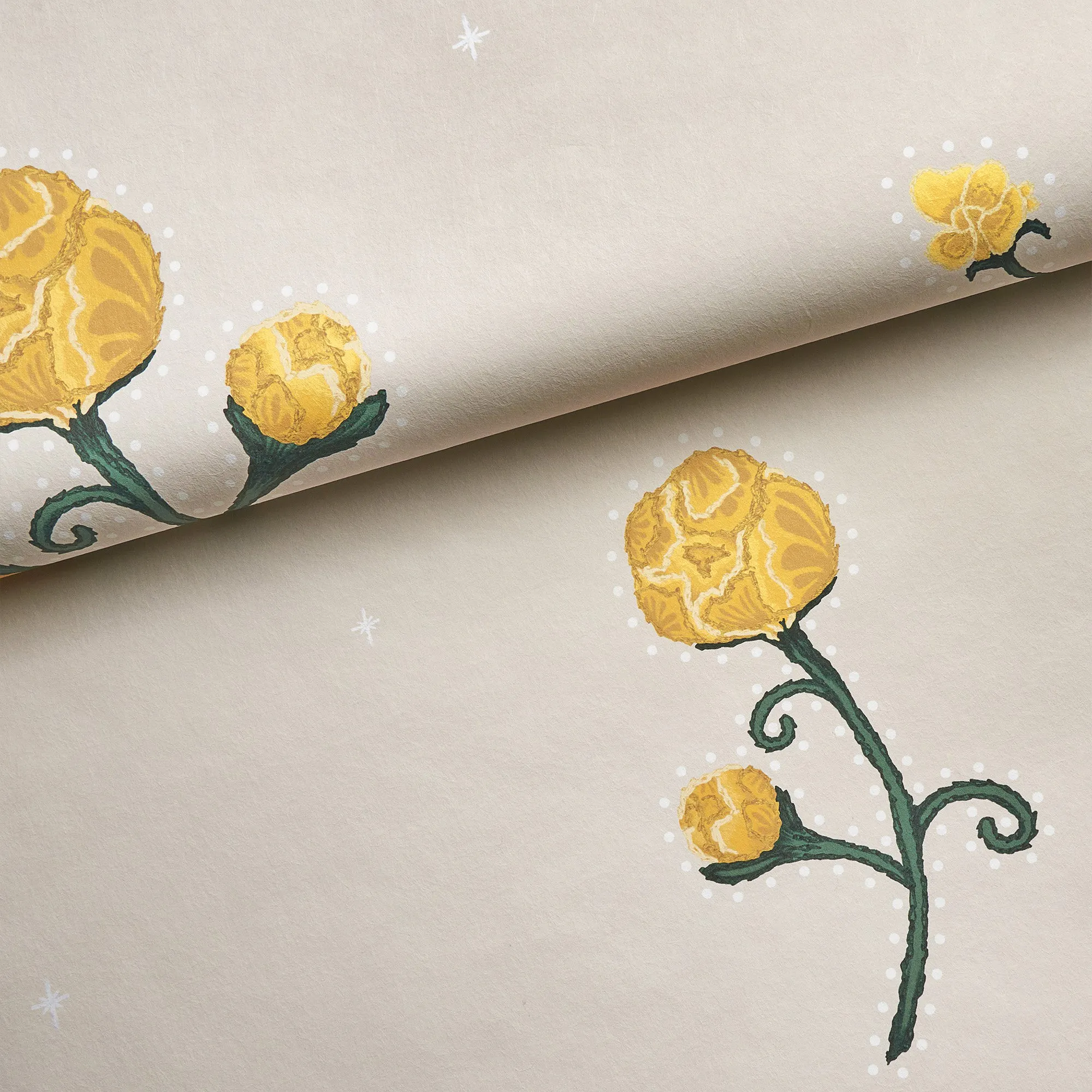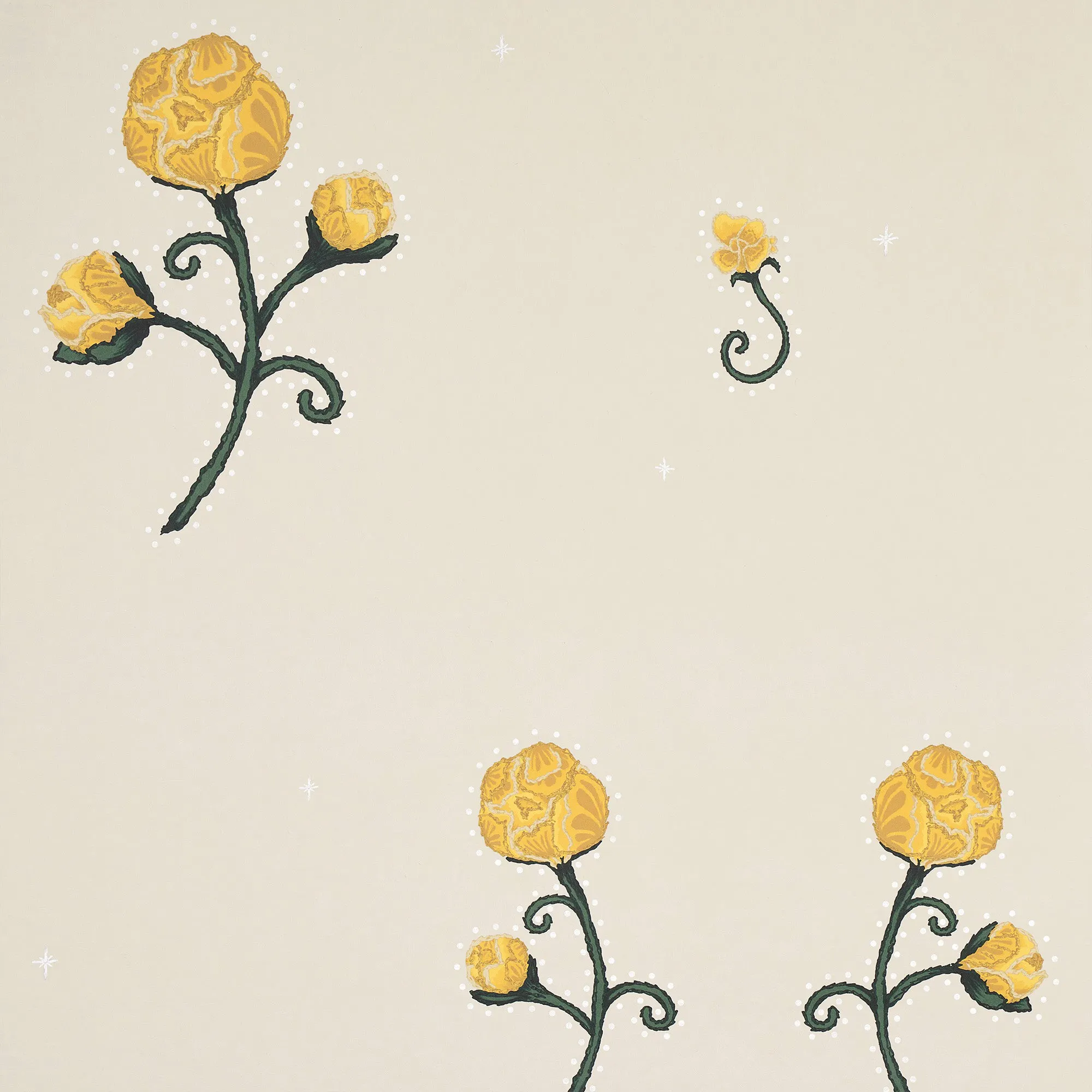 Dolly Parton, John Lennon, and Elton John are some of the music legends known for donning the infamous Nudie Suit. RHINESTONE COWBOY pays homage to the bejeweled chain-stitch wonders by Nudie Cohn. In our own mid-scale floral interpretation, Peony-like flowers are dotted with details and a simple cadent layout. Designed from original chain-stitch embroidery, this striking design will bring out your inner showperson. Select colorways available in Peel & Stick.
