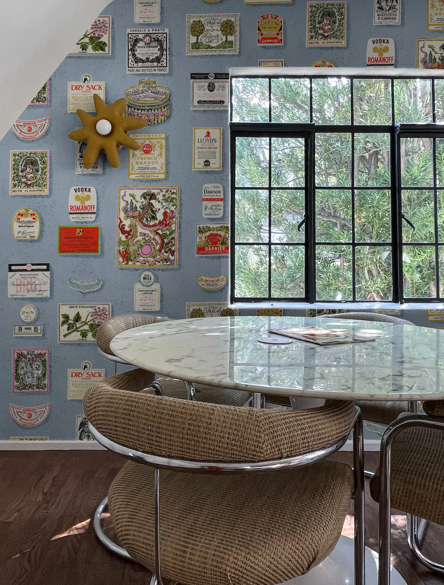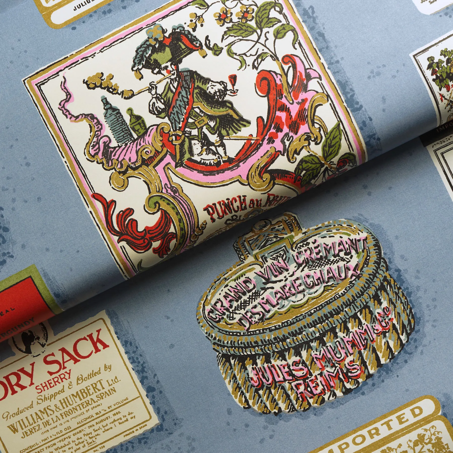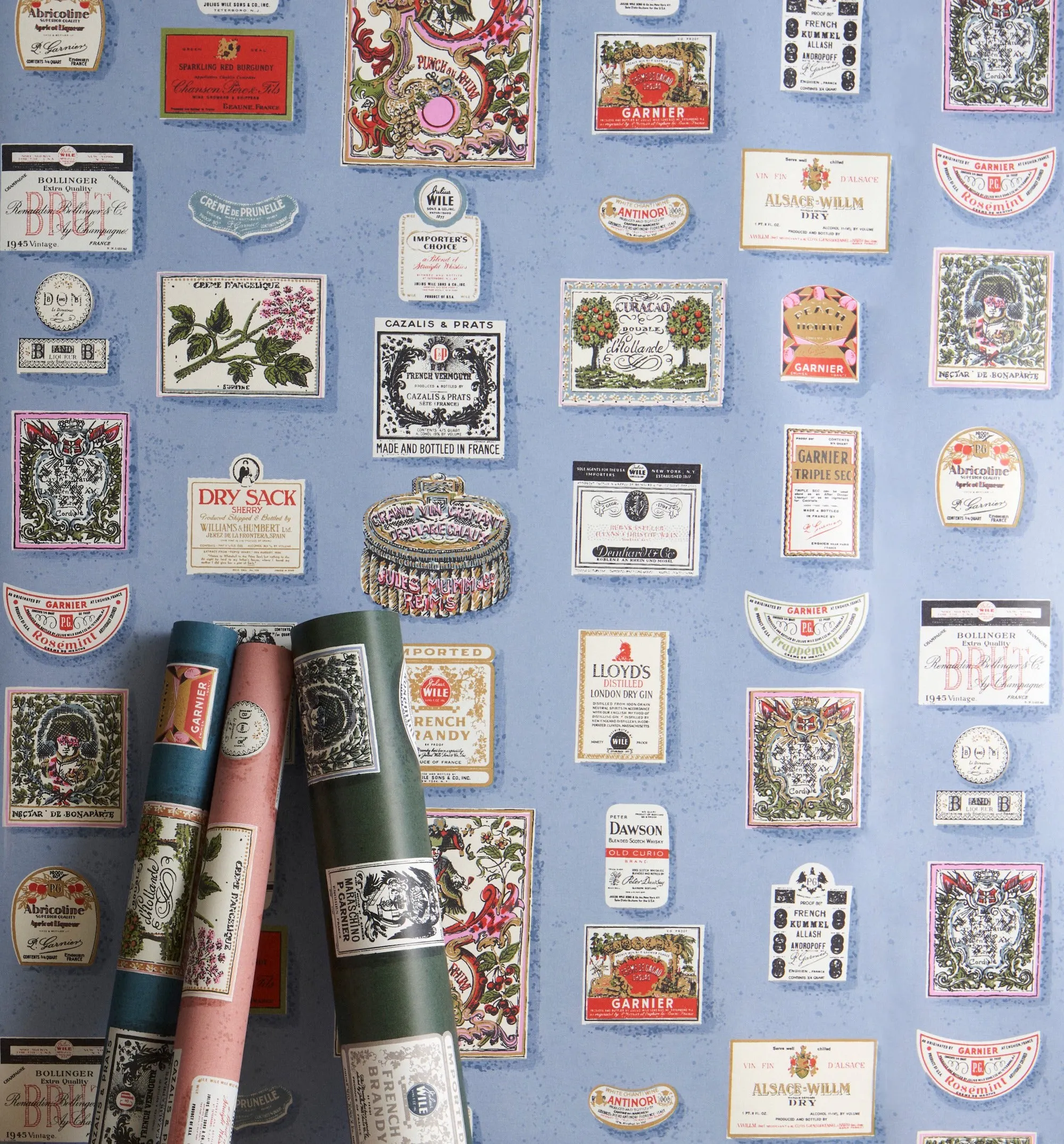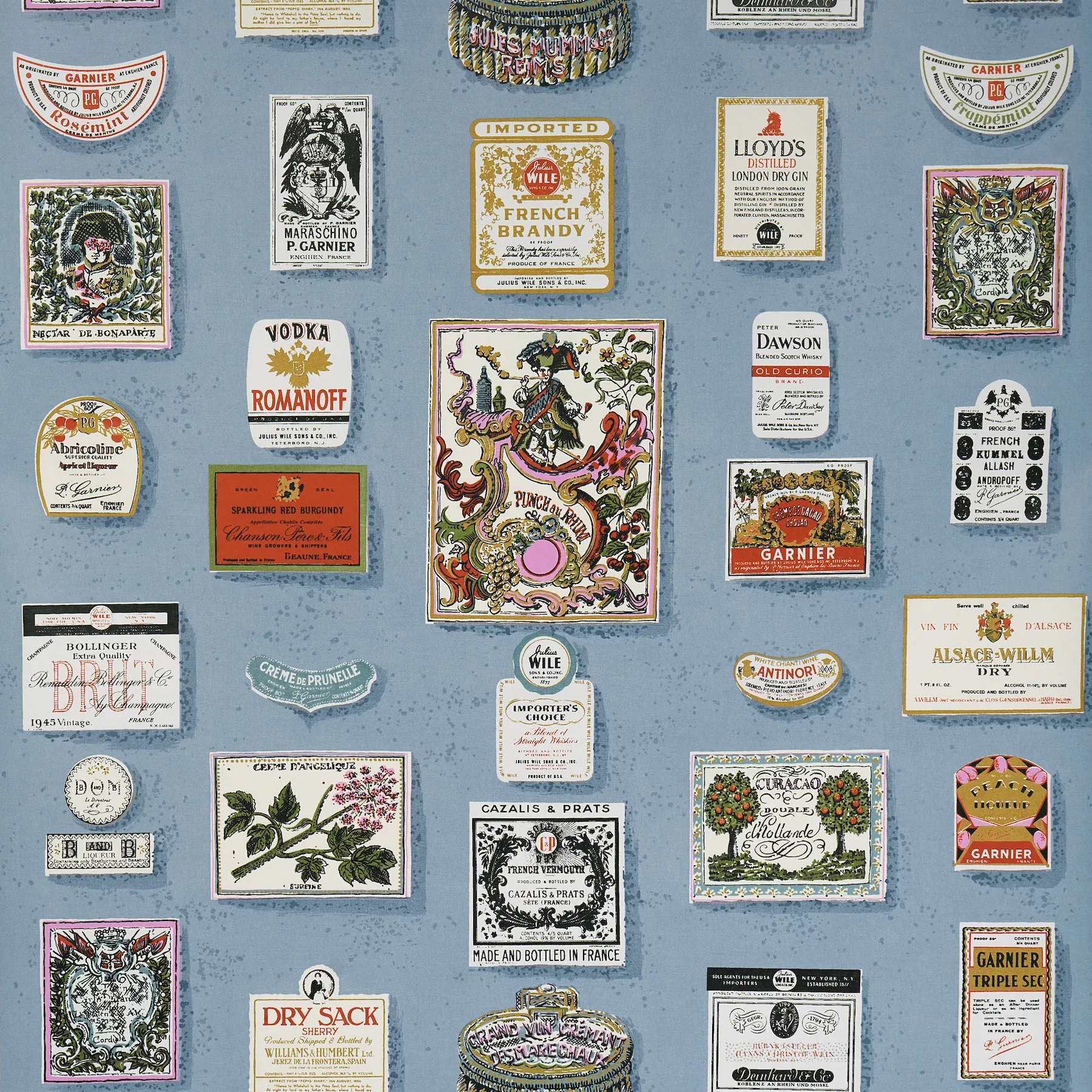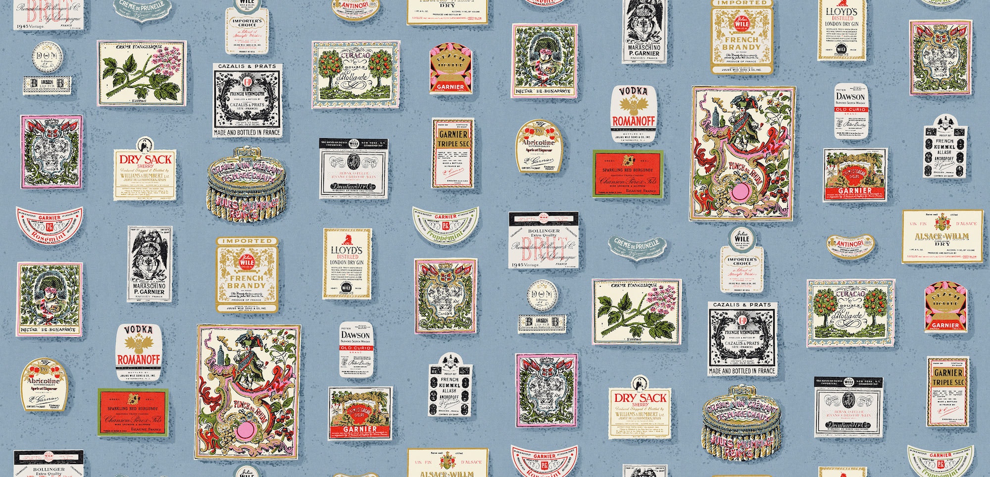 The perfect balance of charming and sophisticated, SALUD is a playful update on a 1950’s Schumacher archival design of the same name. This storied design, featured in the 1995 Cooper Hewitt exhibition - Kitsch to Corbusier: Wallpaper from the 1950's, highlights multi-colored hand-illustrated liquor labels in a graphic layout. This lively wide-width design will bring maximalist impact to any space.