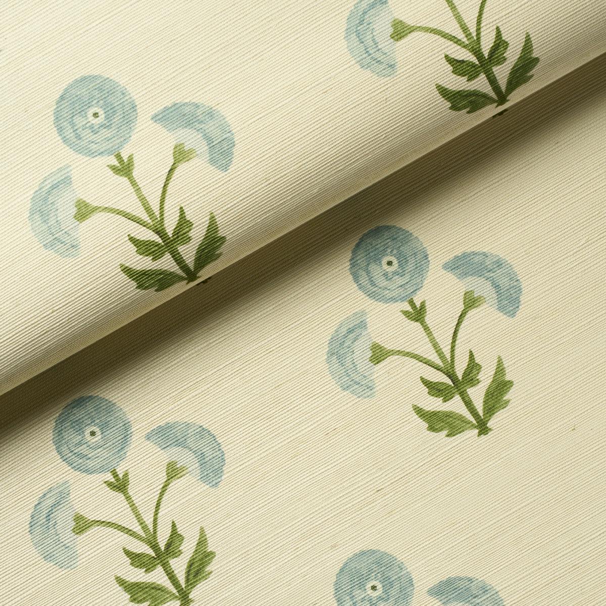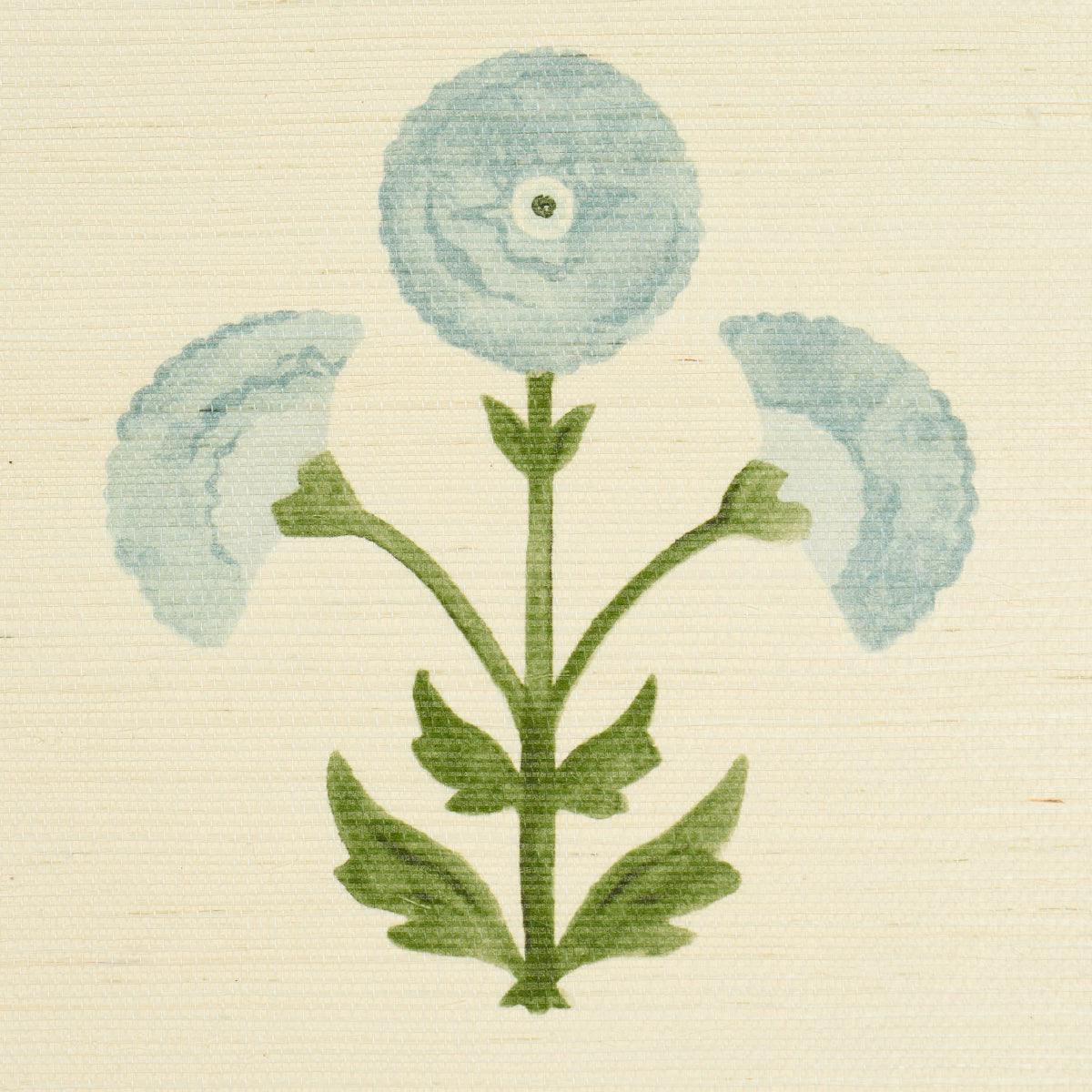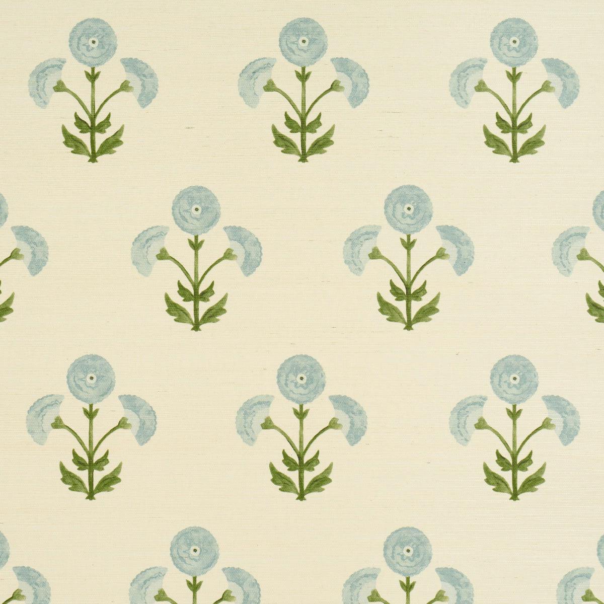 Saranda Flower Sisal by Schumacher is a vibrant wallpaper inspired by traditional Indian hand-block prints. Featuring marigold-colored stylized flowers on textured sisal, this design creates a painterly bouquet full of rich color and depth, adding a lively touch to any space.