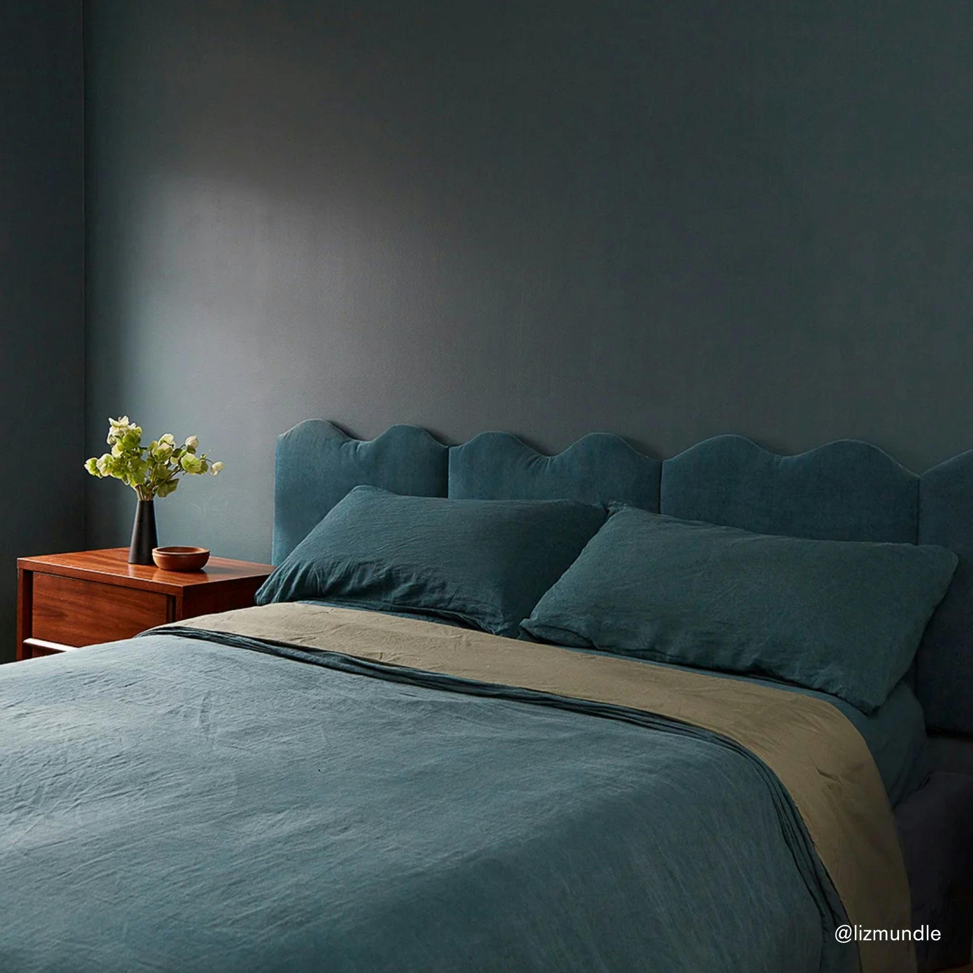 Dark blue-gray with a hint of green undertones. Depending the light, this color can skew blue or green.