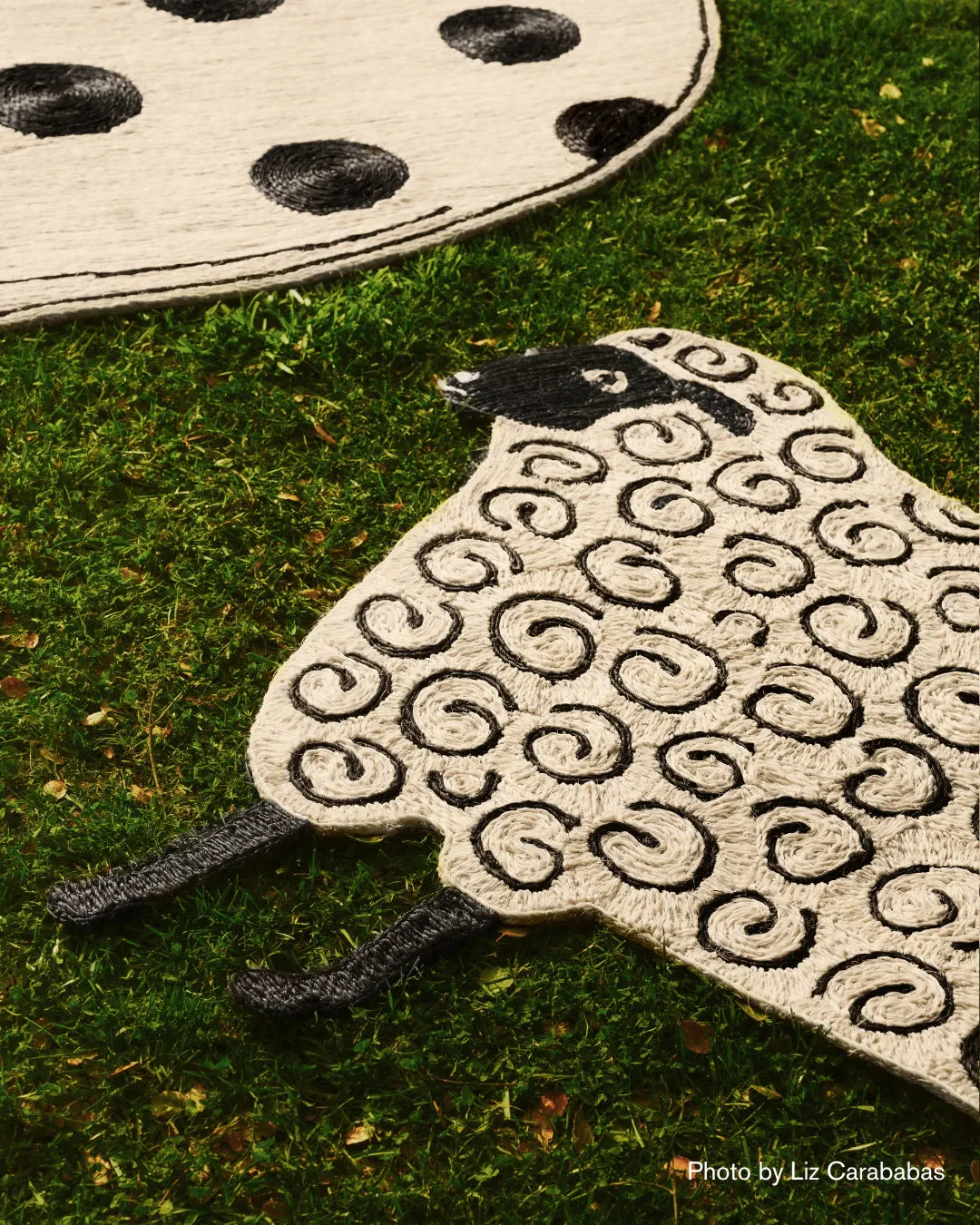 Part art history, part floor covering, all personality. The Sueño Rug is a witty, tongue-in-cheek tribute to 18th and 19th century paintings of prized sheep, handmade from 100% natural abaca fiber. Part of the collection by Charlap Hyman & Herrero for Patterson Flynn, a studio recognized with the 2026 National Design Award for Interior Design by the Cooper Hewitt Smithsonian Design Museum. Just as the old masters elongated and exaggerated their subjects to signal value, Sueño plays up the curly, tactile texture of a sheep's wool in every detail. Spiral black linework dances across a natural ground while the abaca fiber itself is hand-coiled in swirls by skilled artisans, making the medium and the message one and the same.