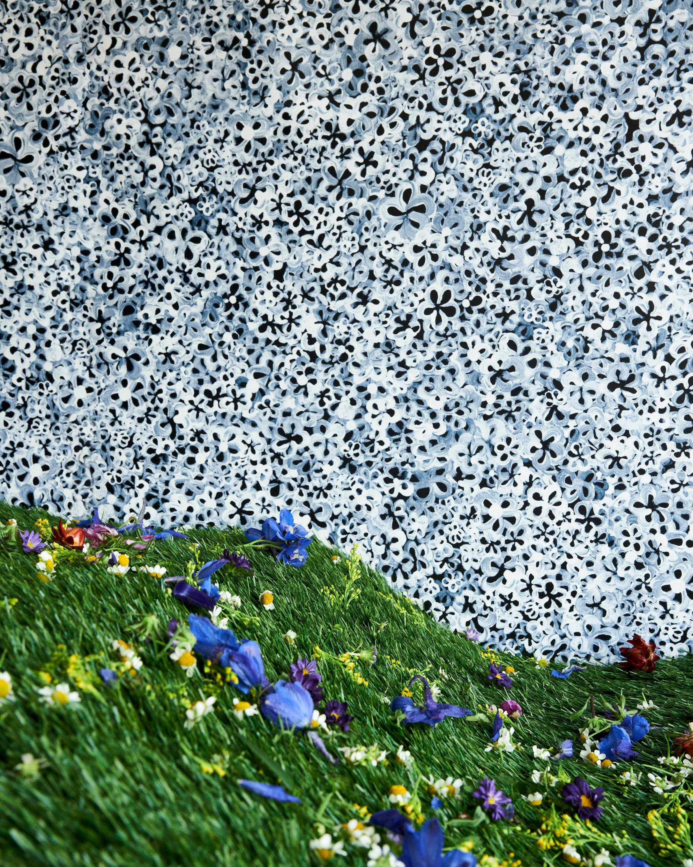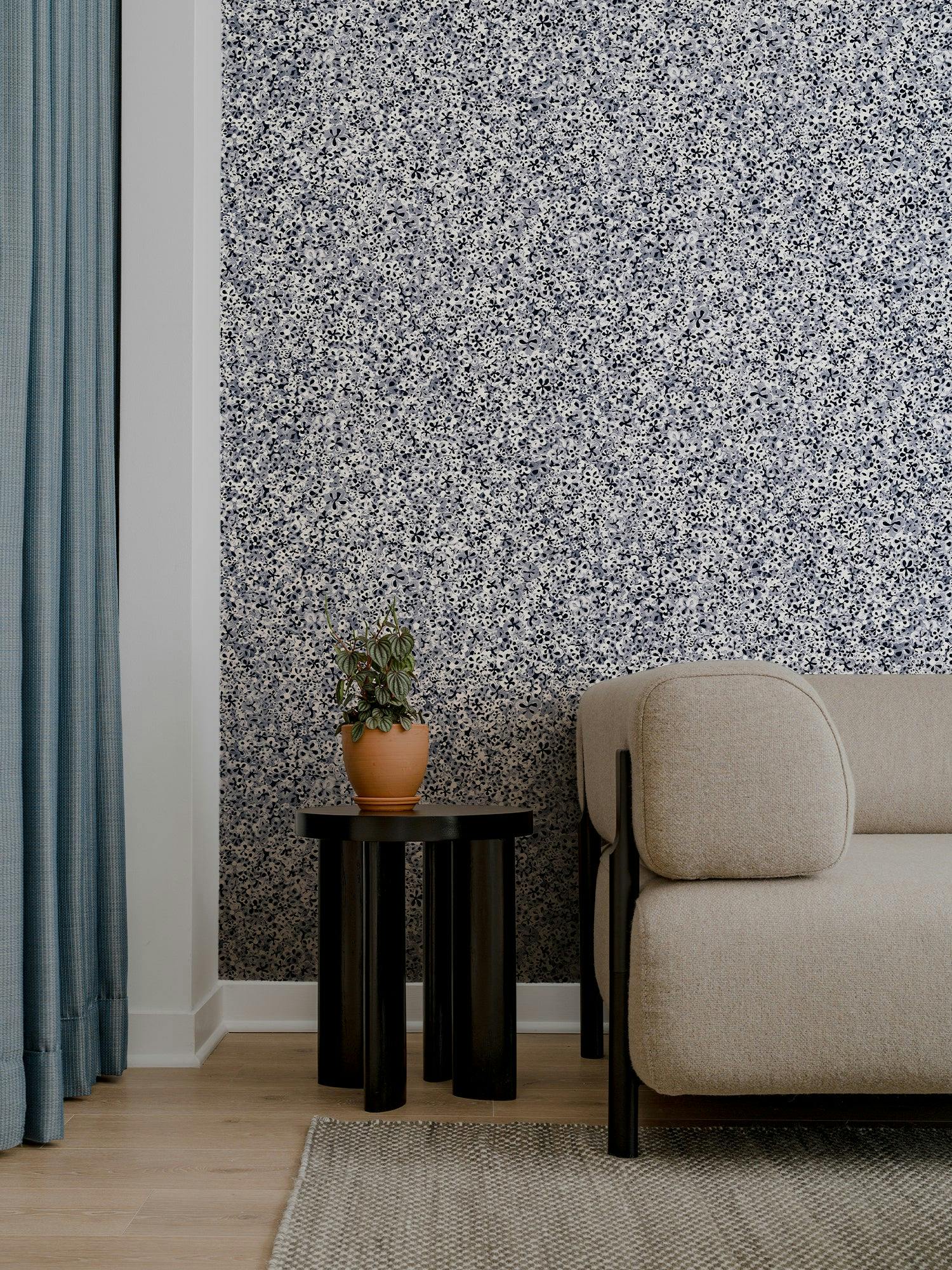 Hand-painted, semi-transparent flowers are layered in a rolling landscape to form a superbloom. A botanical phenomenon that can wrap an entire room, carry an accent wall, or ceiling, SUPERBLOOM is a small-scale design with extraordinary nuance and dimension. Also available in Peel & Stick in Deep Blue colorway.