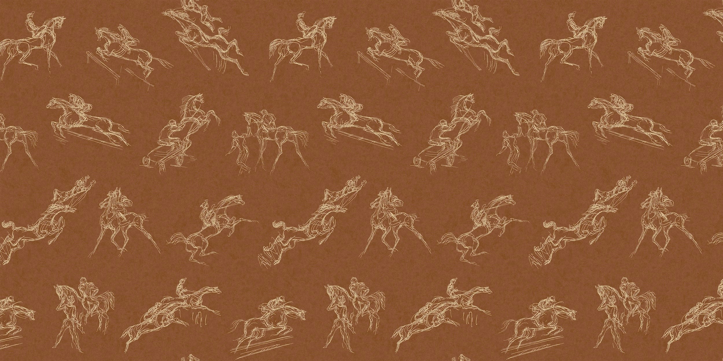 TANBARK reimagines illustrator John Groth’s original 1957 fabric for Schumacher, Tanbark, as a modern toile-like wallcovering. Groth used the term “Speed-line” to describe his fast, gestural style of drawing. This mid-scale design highlights his quick, sketch-like marks to create a dynamic narrative composition that is contemporary and artful. Printed on a subtle-textured ground with single-color linework, this design is a perfect backdrop for any room.