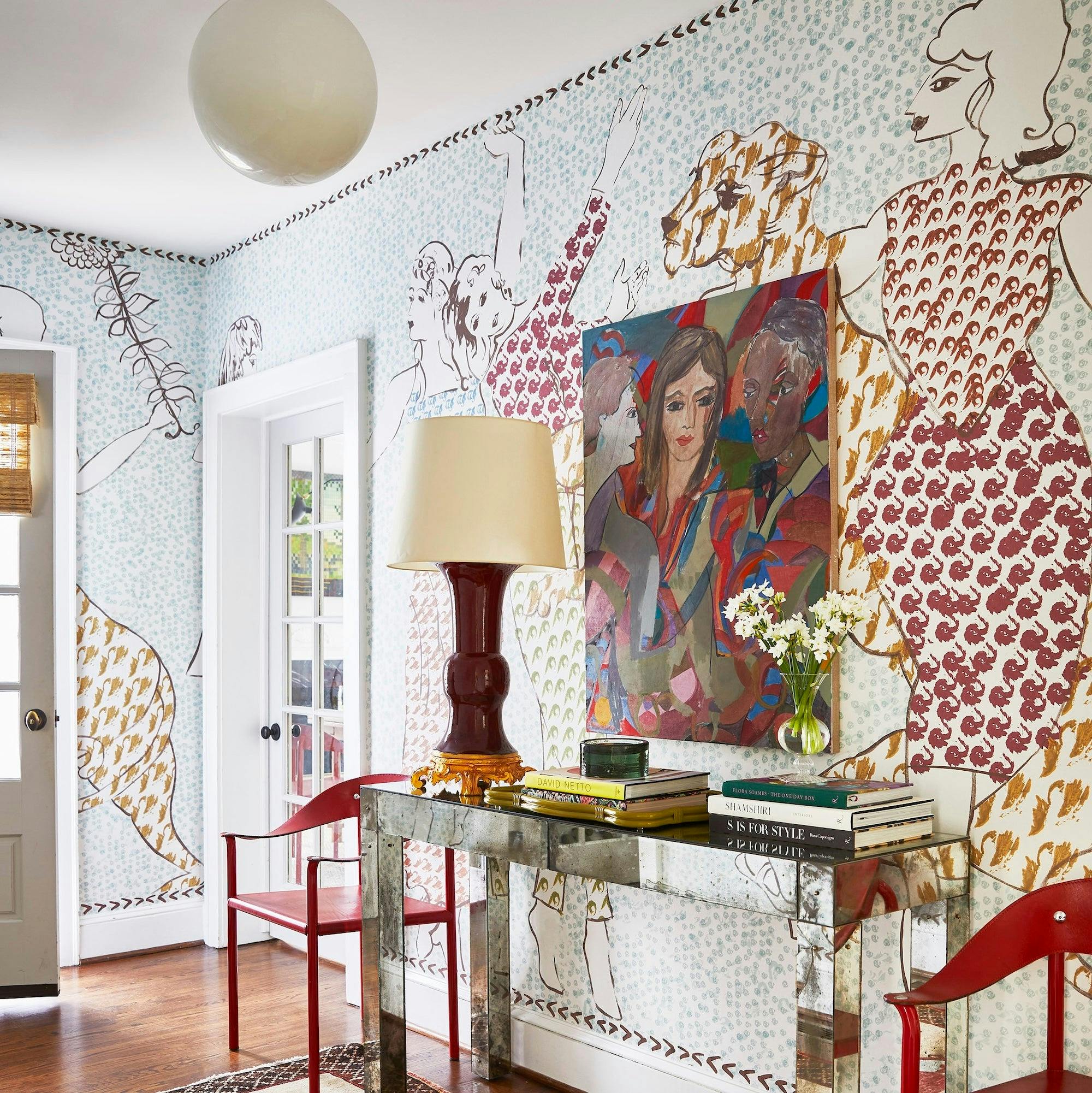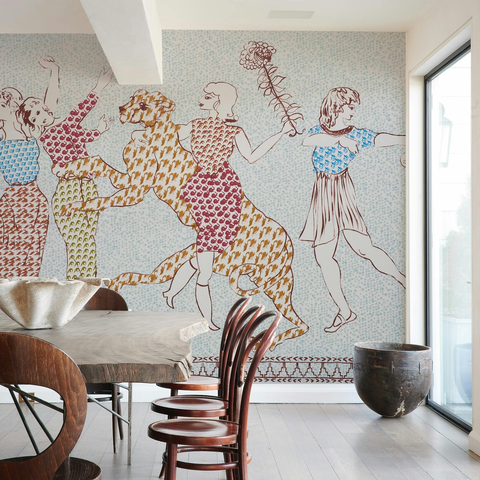 A whimsical and majestic three-panel design by fine artist Jackie Gendel. Peg Norriss—the brainchild of designer Barrie Benson and gallerist Chandra Johnson—works with leading contemporary artists to create showstopping wallpapers.