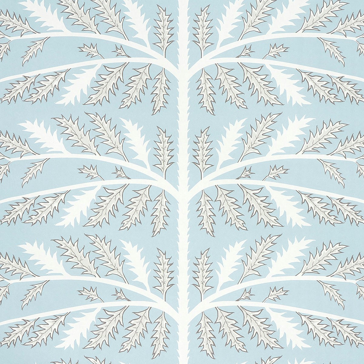 Thistle by Neisha Crosland combines elegance and boldness in a fantastical botanical motif. Inspired by the precision of espaliers—trees trained to grow flat against a wall—and the vibrant mosaic tiles of Istanbul’s 15th-century Topkapi Palace, this design features a striking rose-colored thistle pattern. Printed on a textural, fibrous ground, the full-width repeat enhances its dramatic presence, making it perfect for spaces in need of a statement wallpaper with both historical charm and modern edge.