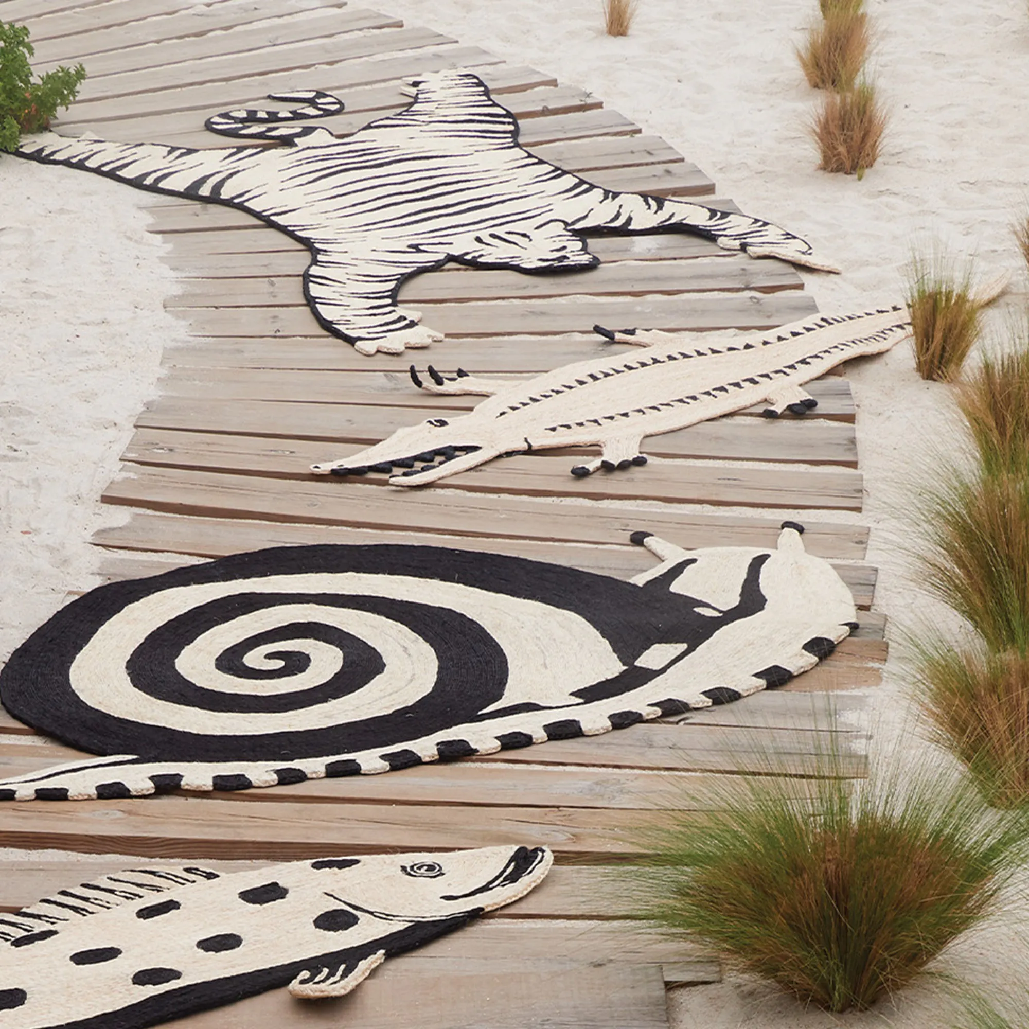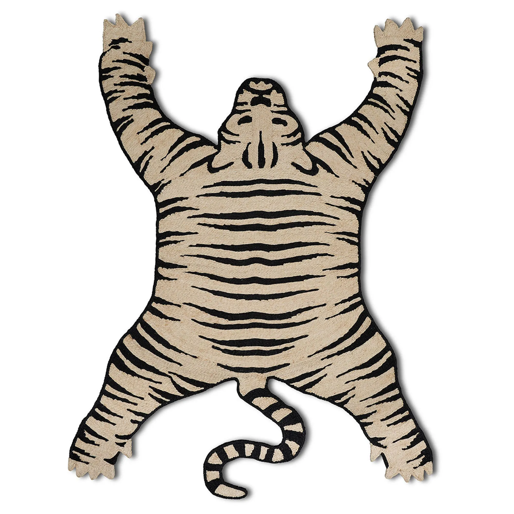 Designed by Charlap Hyman & Herrero and inspired by 17th-century cabinets of curiosity, Tigre is a fanciful, uniquely modern take on a trophy rug. Featuring black and natural-colored stripes formed from hand-coiled abaca, this rug defines animal magnetism.
