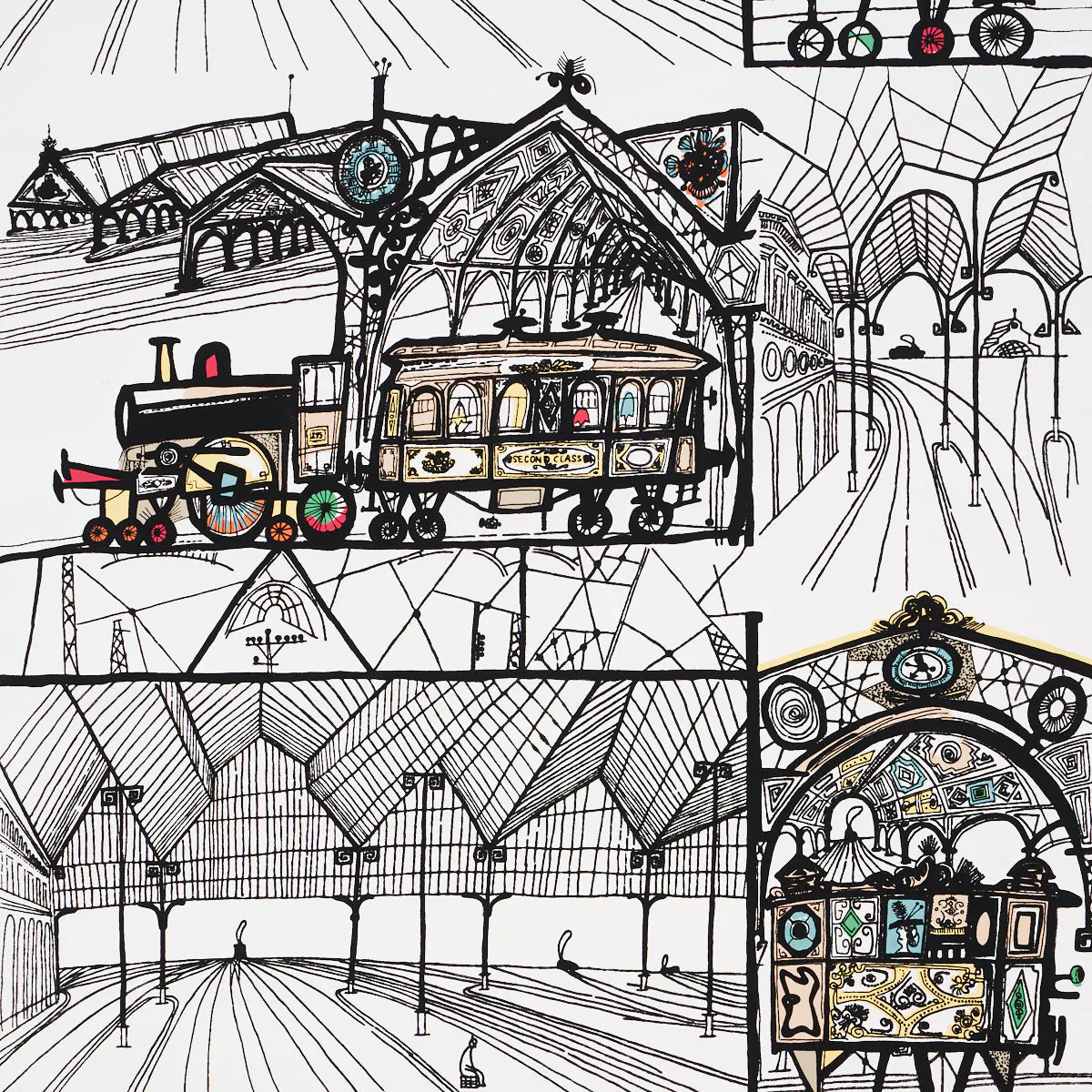 Saul Steinberg’s TRAINS wallpaper brings his iconic wit and artistry to life with a playful depiction of locomotives and train tracks winding through whimsical landscapes. Renowned as a legendary New Yorker cartoonist, Steinberg’s signature illustrative style transforms this large-scale pattern into a journey filled with humor, nostalgia, and charm. Perfect for adding a touch of character to living spaces, children’s rooms, or creative environments, this design appeals to both art lovers and interior enthusiasts.