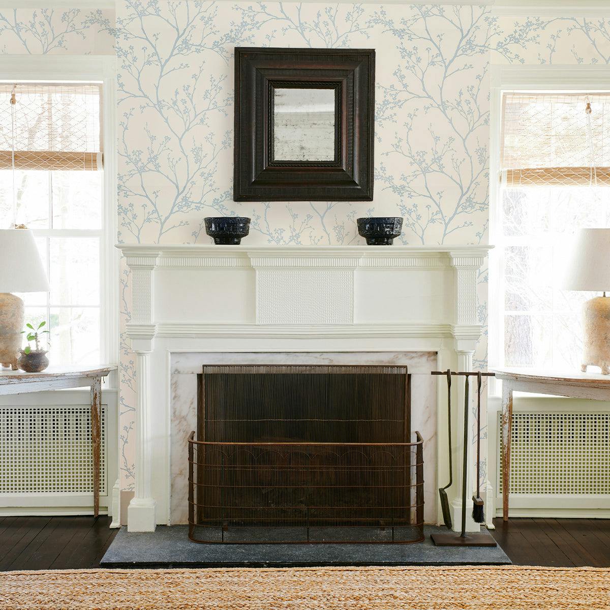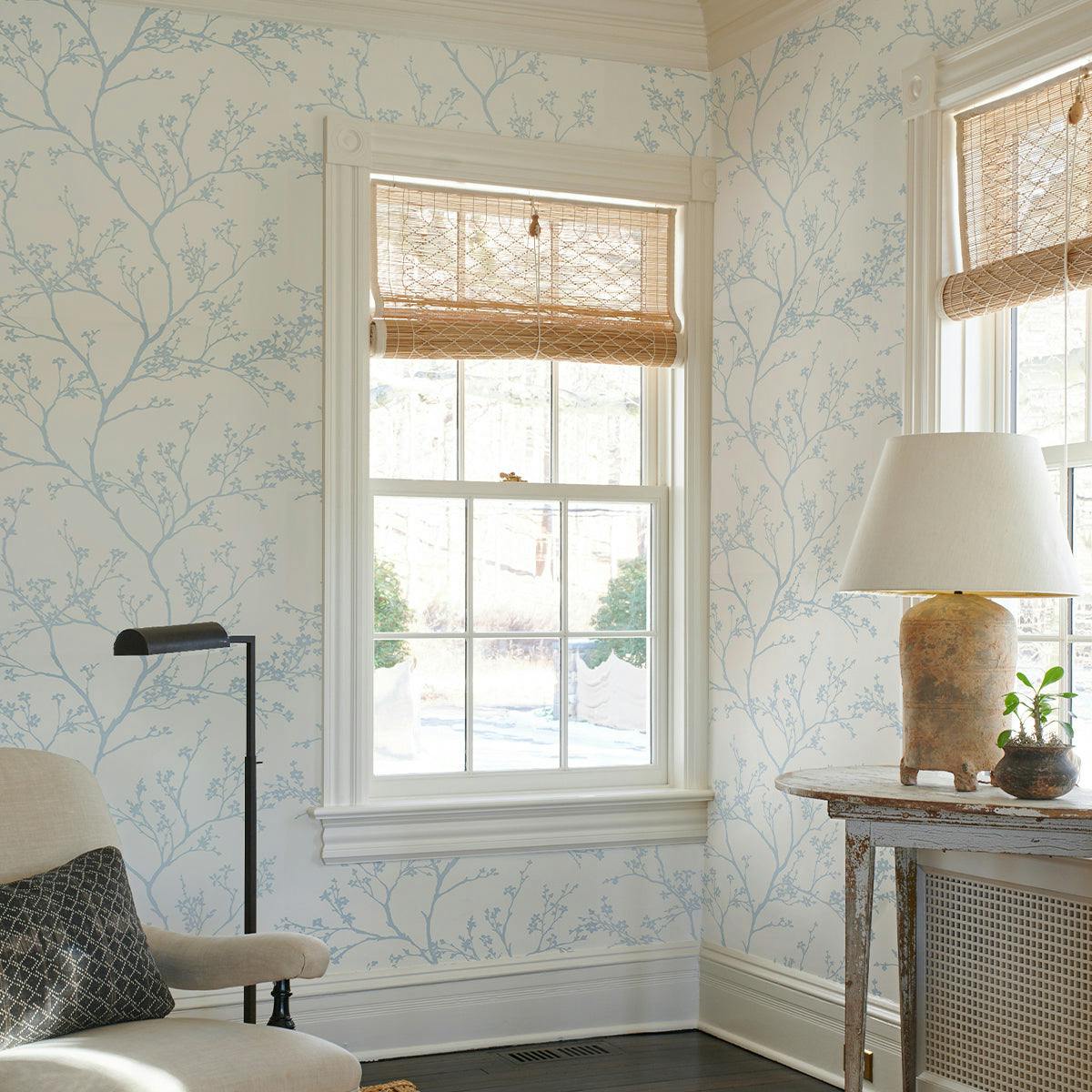 Twiggy by Schumacher is a delicate yet graphic wallcovering that brings the beauty of the outdoors inside. Featuring beautifully detailed flowering branches silhouetted against a solid ground, this design offers a fresh, nature-inspired aesthetic that's perfect for adding subtle elegance to any space.