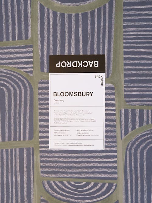 Reminiscent of the architecture of London's Bloomsbury. Textured linework paired with graphic structure create playful relationships and an overall sense of movement. Also available in Peel & Stick in Deep Navy colorway.