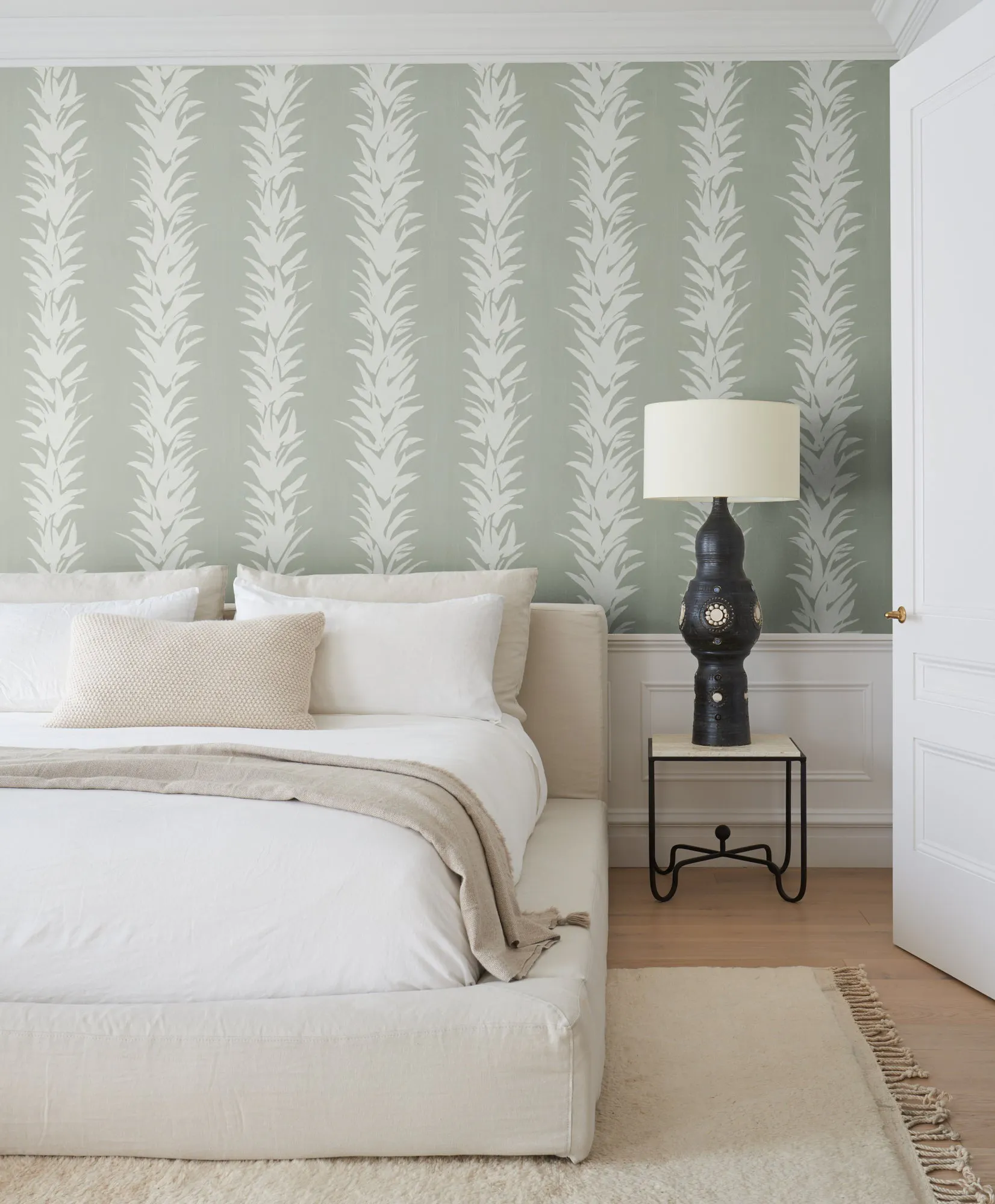 A classic botanical design abstracted and reimagined with painterly strokes and a nod to the imperfect. Midscale design with negative space for a column effect. Also available in Peel & Stick in Sand colorway.