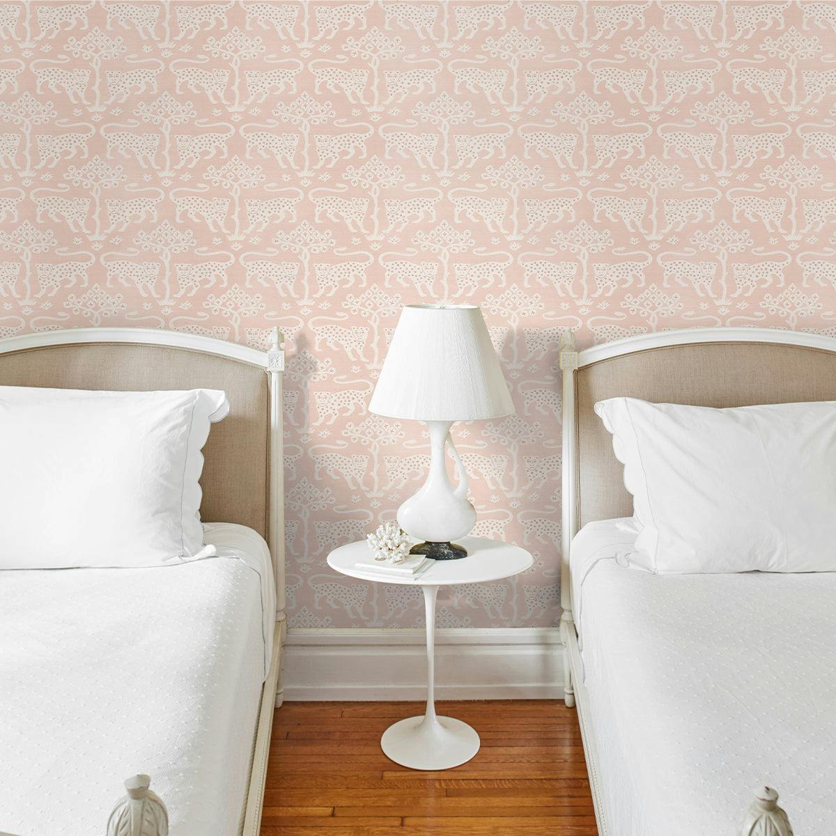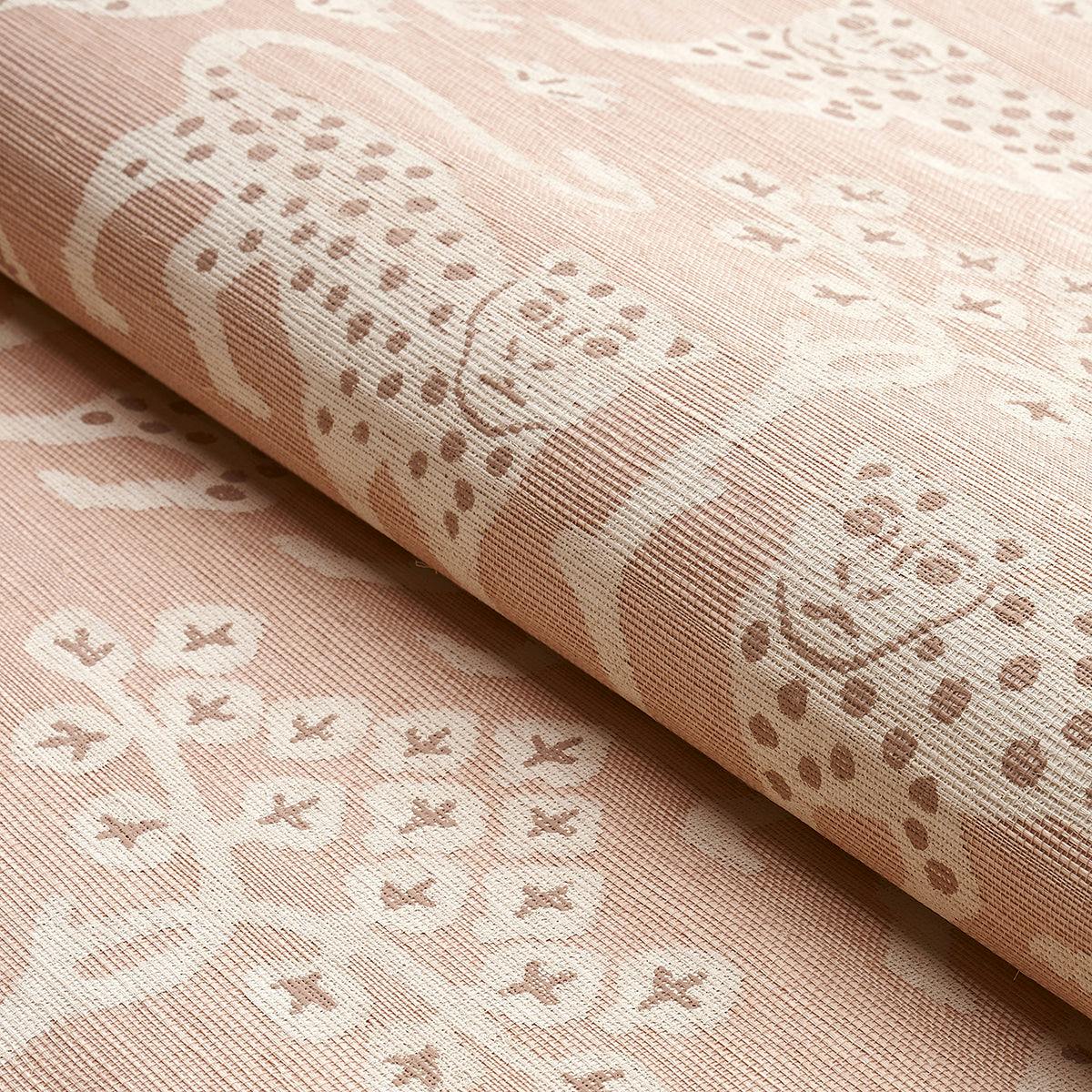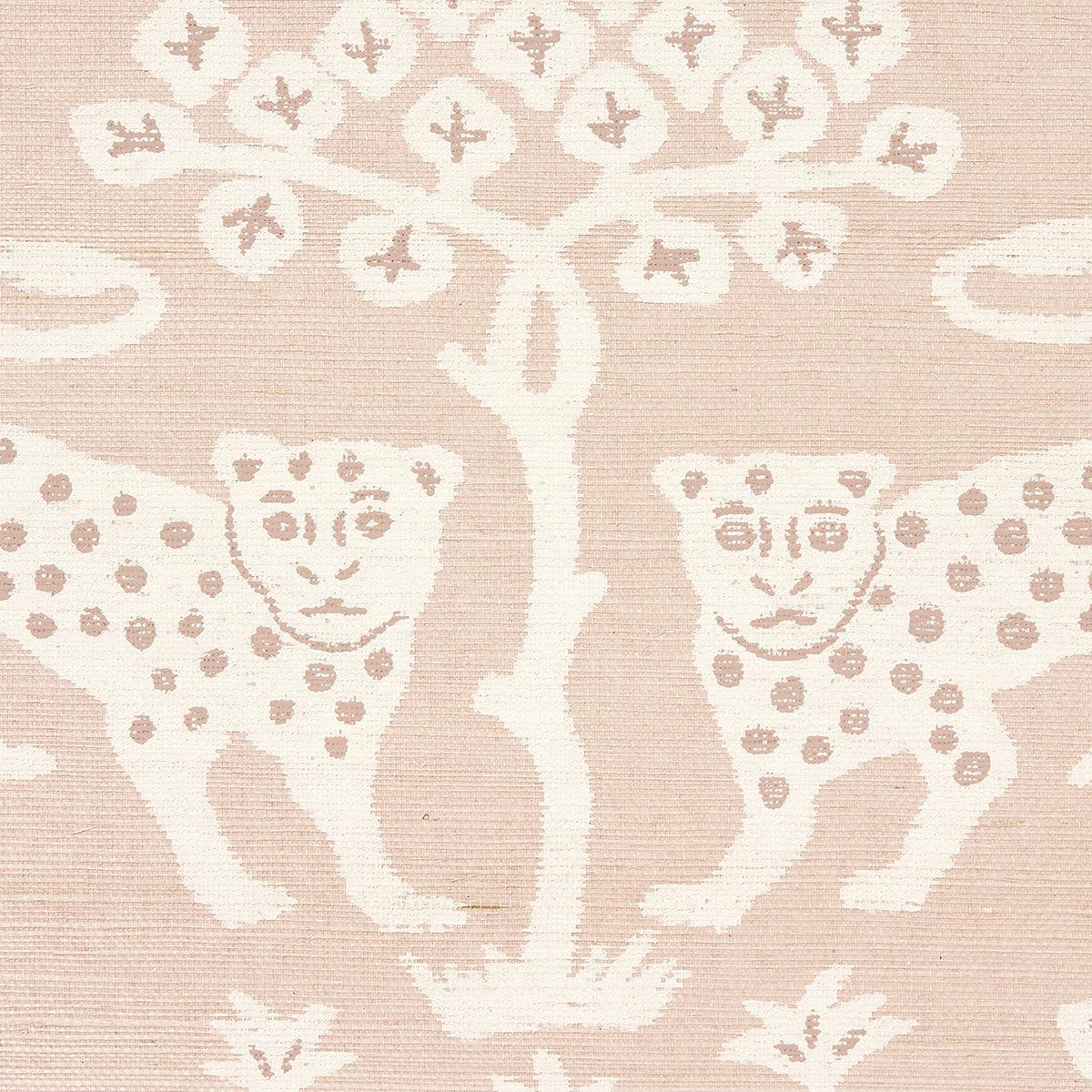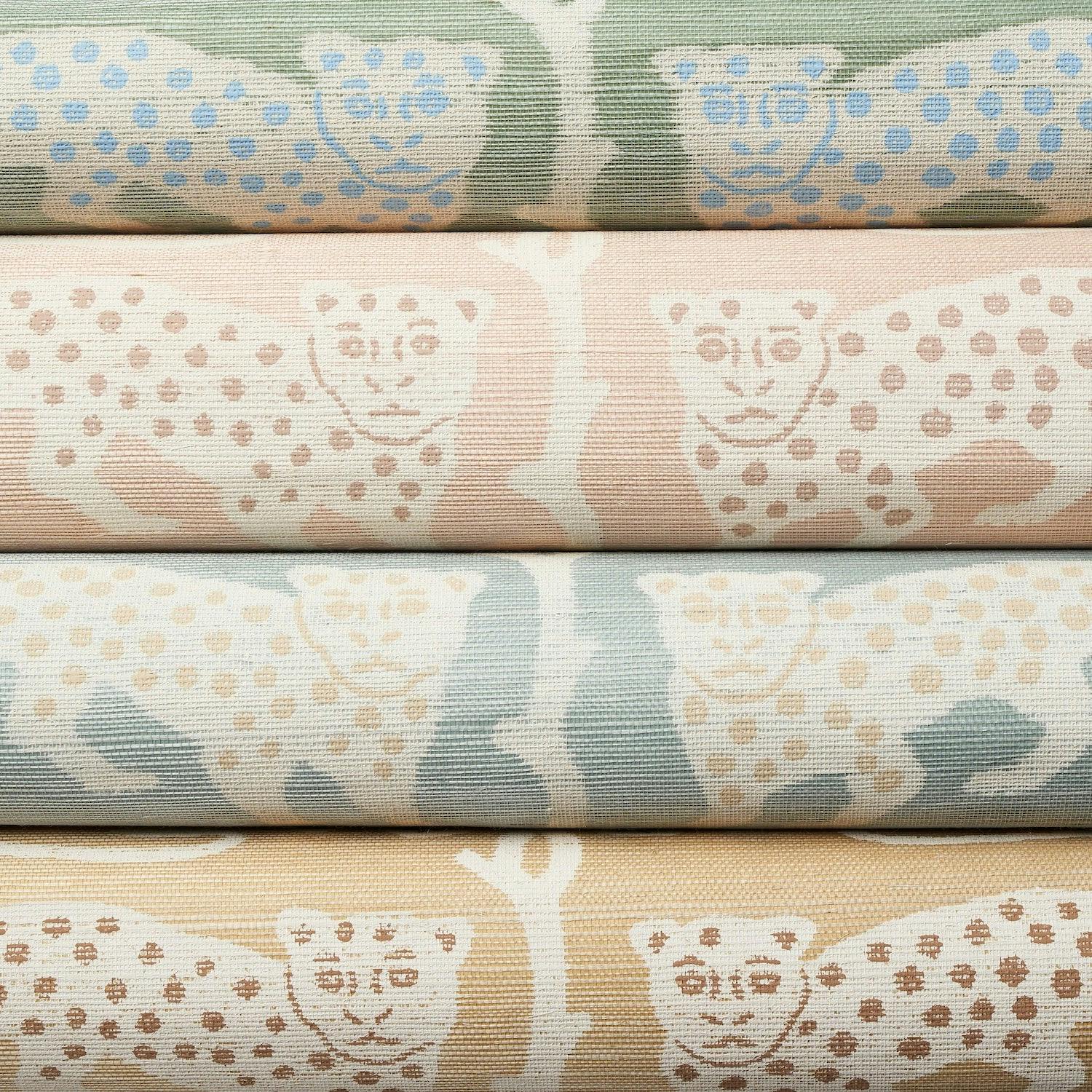 Woodland Leopard Sisal by Schumacher features a charming, mid-scale pattern inspired by the Woodland Leopard Velvet. Hand-drawn in our studio and printed on textured Haruki Sisal wallpaper, this design combines historic references with a chic mirrored repeat of leopards and trees. Perfect for a stunning focal wall or an entire room, this wallpaper adds sophistication and timeless style to any space.